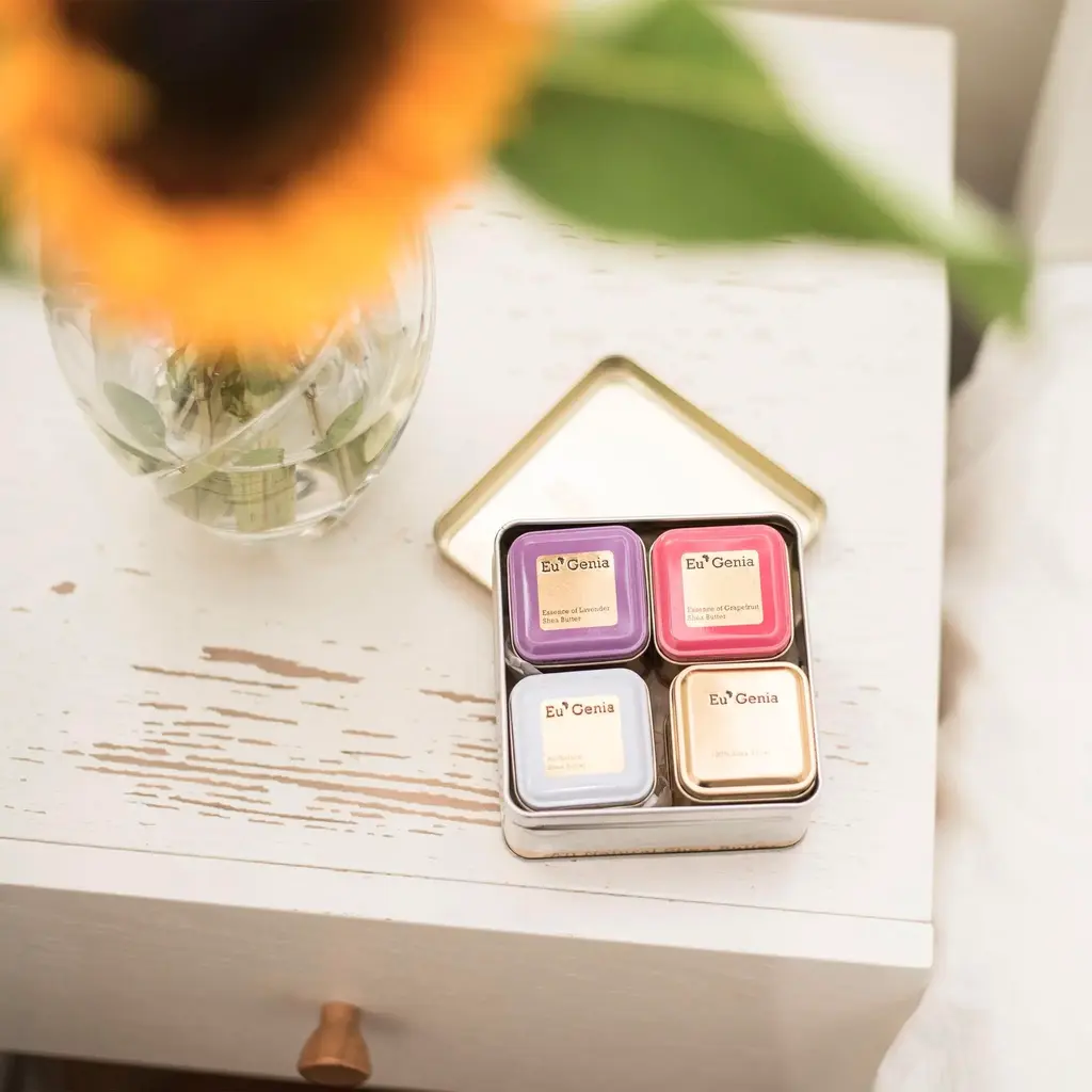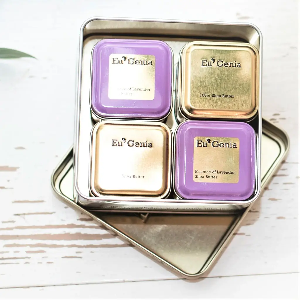 The Shea Butter Gift Set Mix is made with the highest quality luxury shea butter in the world. The vitamin rich body butter sets help moisturize the skin. Eco-friendly shea butter design in partnership with hundreds of sustainably paid farmers in Ghana, West Africa. The shea butter gift set contains 2oz each of Lavender (82.5% shea), Grapefruit (82.5% shea), Fragrance-Free (82.5% shea), and dermatological (100% shea butter). Place a tin on a vanity counter in a powder room for guests to use.