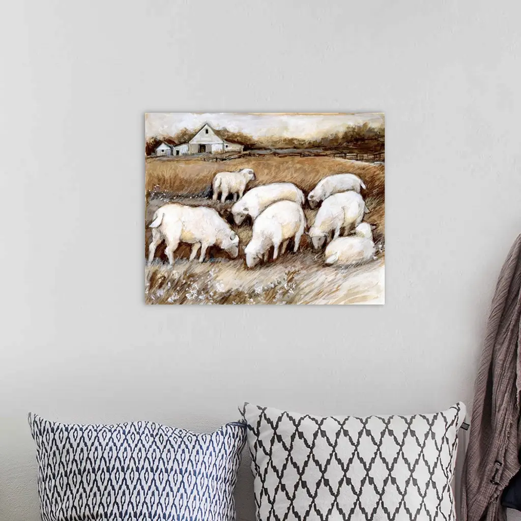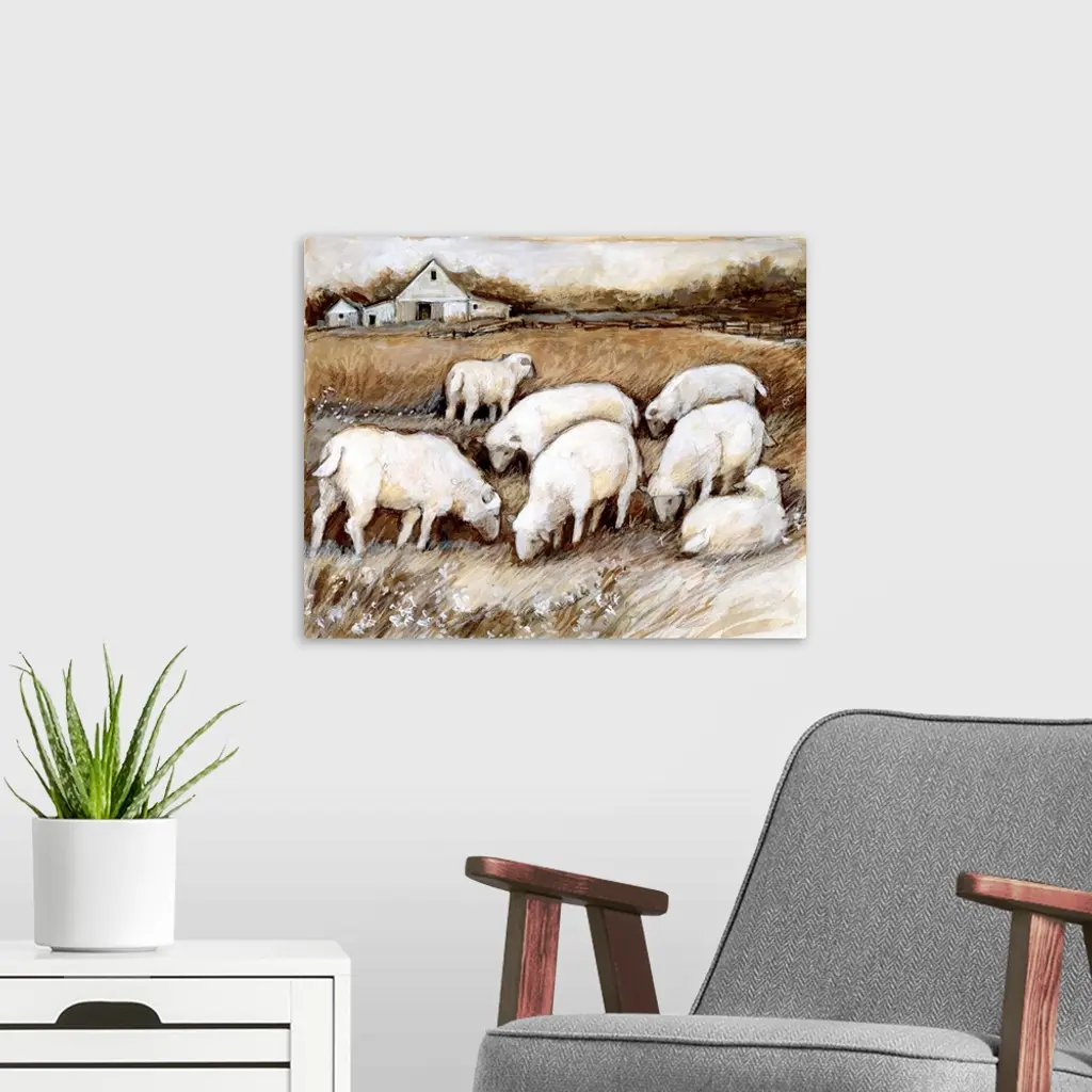 A rustic farm vignette in neutral tones evokes a sophisticated country sensibility