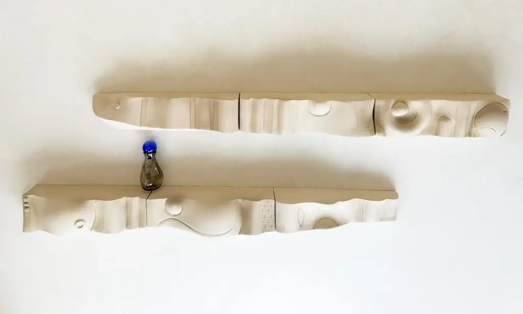 Shelf by olivia cognet dimensions: w 210 x d 15 x h 20 cm materials: ceramic. Module of 3 parts. Each of olivia’s handmade creations is a unique work of art, the snapshot of a precious moment captured in a world of fast ‘everything’. this piece is attributed to the mentioned designer/maker. It has no attribution mark and no official proof of authenticity, however it is well documented in design history. I take full responsibility for any authenticity issues arising from misattribution