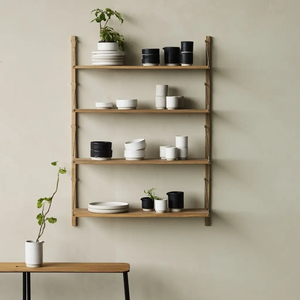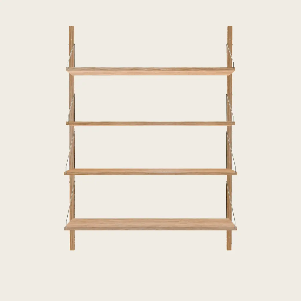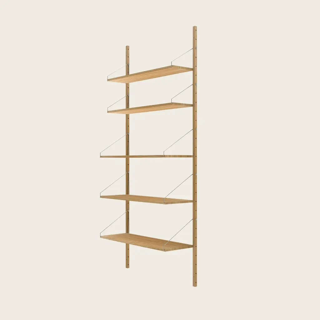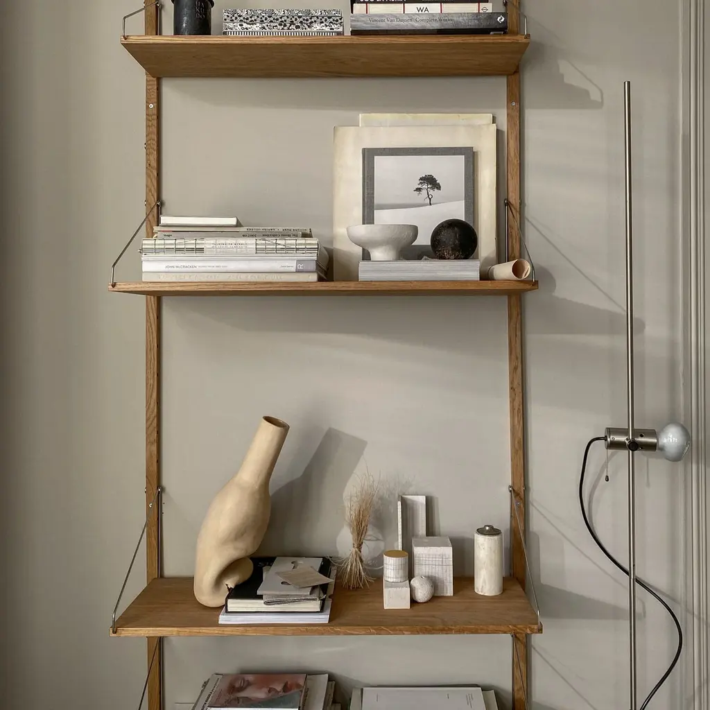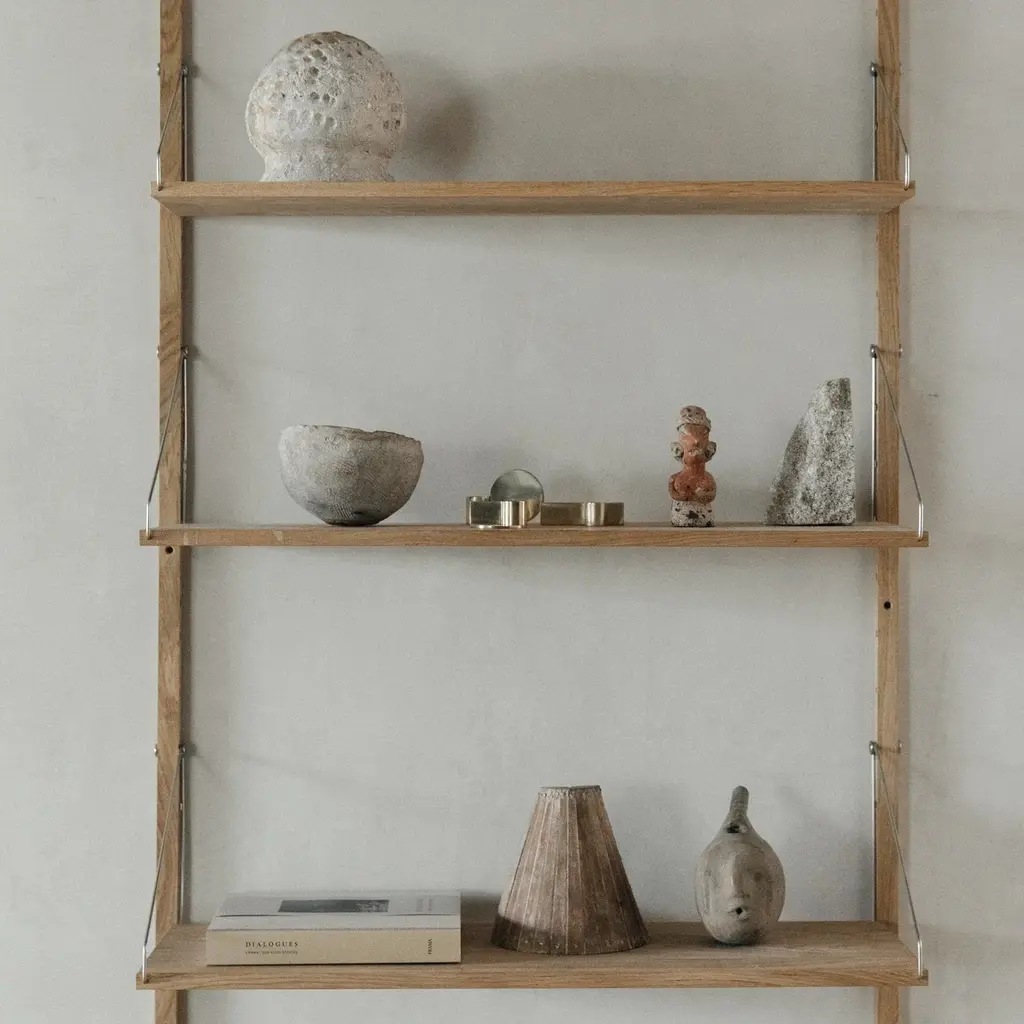 The Shelf Library is a continuation of the well-recognised shelf design by Frama. Fastened with solid steel screws on oak rails, you can easily place and restyle your shelves in a variety of ways.