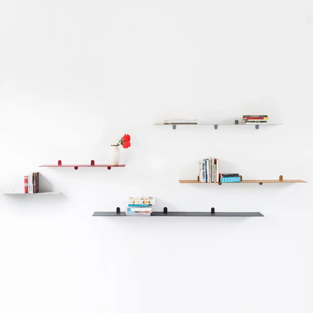 Muller Van Severen elevates the idea of a wall shelf with this spare steel rendition. Finished in gleaming brass or a choice of refined color-ways, it eschews extraneous detail—even the brackets are laser-cut flaps on the edge of the plate itself. N°1 is the shortest of the series and perfect for highlighting a single objet. Or it can be used in multiples for an expansive wall arrangement.