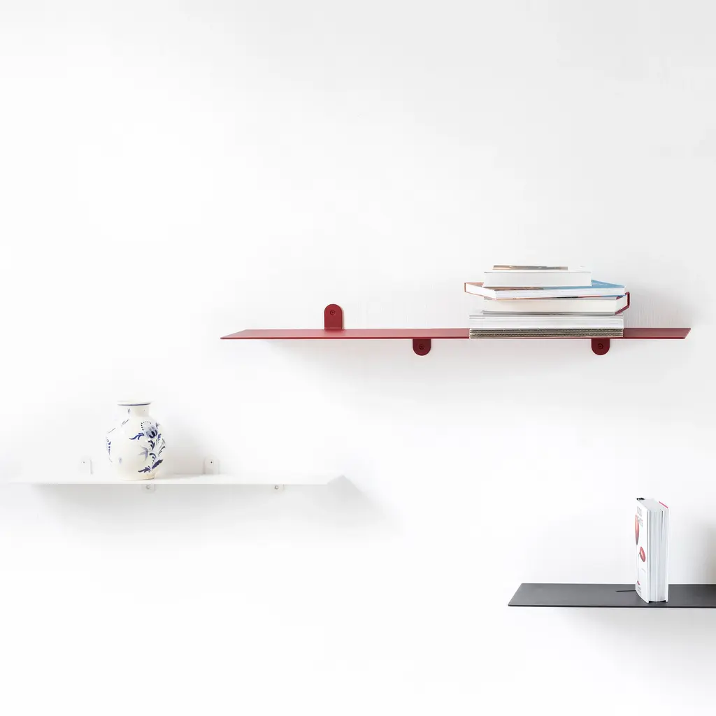 In a versatile mid-size, Muller Van Severen’s wall shelf provides storage on its own or combines with the rest of the series for custom wall arrangements. Crisply styled in steel, N°2 is a study in simplicity, with laser-cut flaps to hold it in place seamlessly. Chose from a selection of curated hues in either neutrals or a pop of accent color.