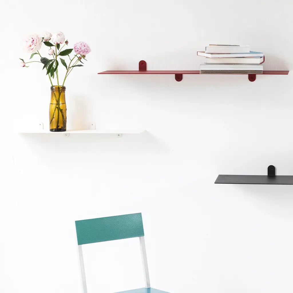 In a versatile mid-size, Muller Van Severen’s wall shelf provides storage on its own or combines with the rest of the series for custom wall arrangements. Crisply styled in steel, N°2 is a study in simplicity, with laser-cut flaps to hold it in place seamlessly. Chose from a selection of curated hues in either neutrals or a pop of accent color.