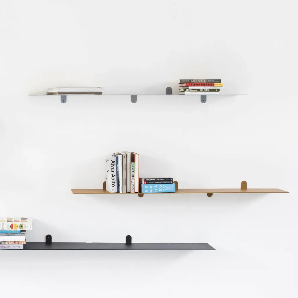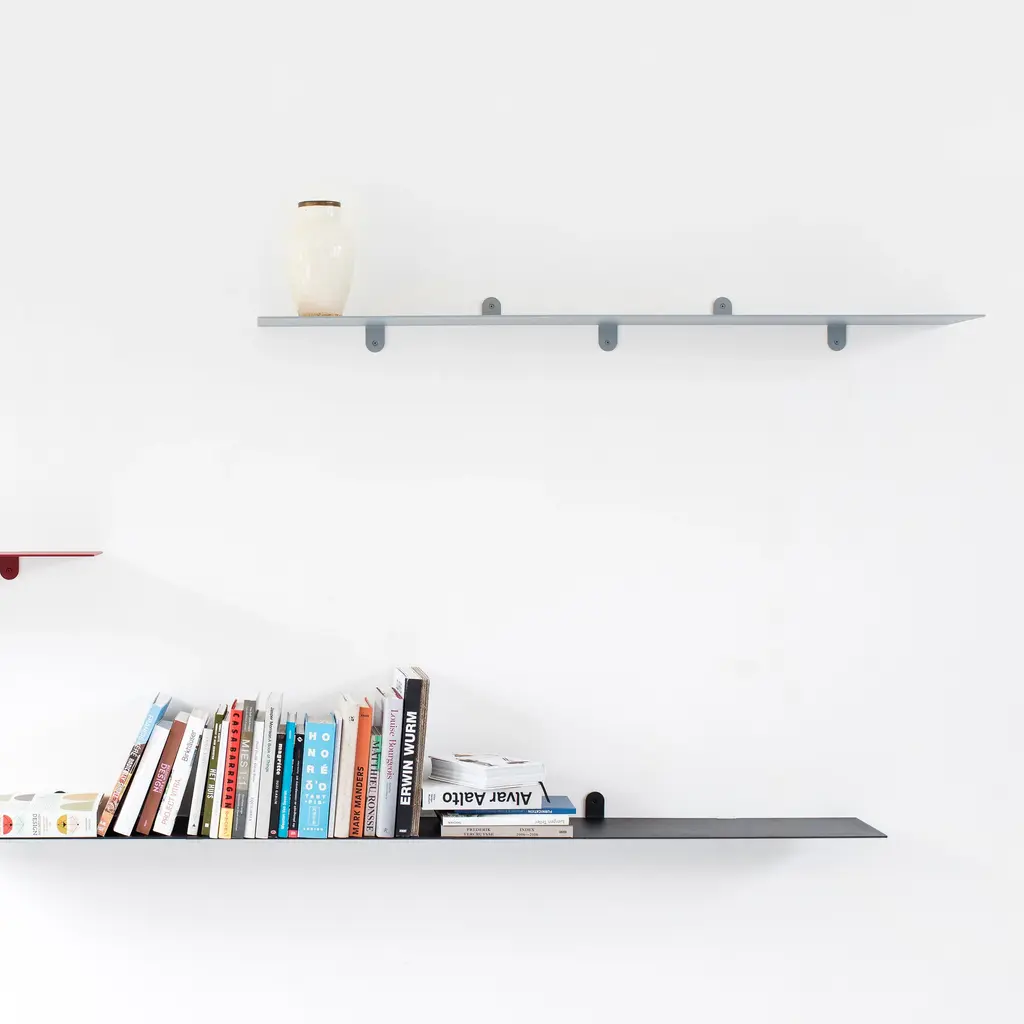 Muller Van Severen offer several sizes in their stylish steel shelving collection including this version at just over 4 feet long. Use on its own or configure it with other models from the series for custom storage. N°3 has a sleek profile, even to the discreet laser-cut flaps that hold it in place, and comes in both neutral and bolder hues.