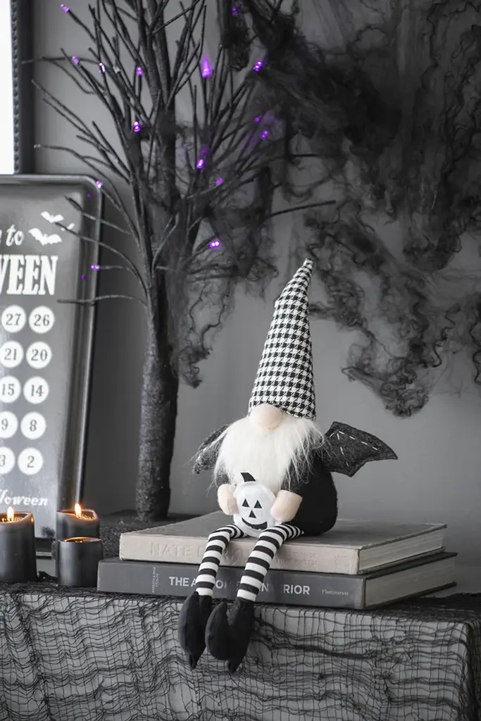 Shelf Sitter Black Gnome With Wings & Black-White Plaid Hat, Set Of 2
