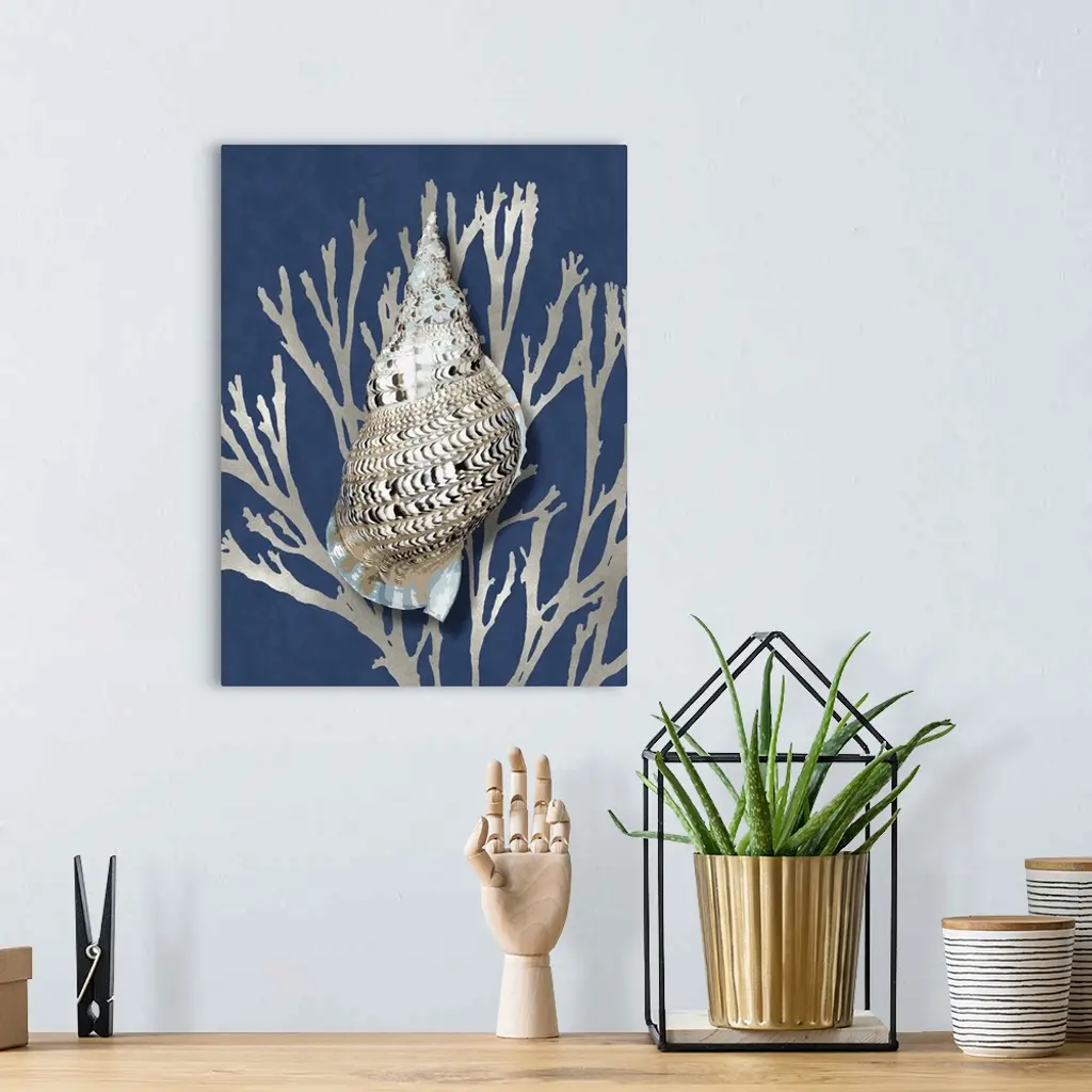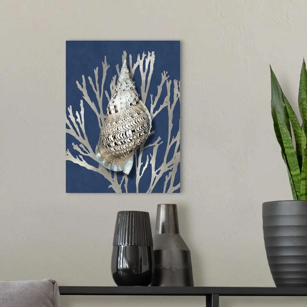 Shell Coral Silver on Blue I wall art for home and office decor. Discover canvas art prints, photos, mural, big canvas art and framed wall art in GreatBigCanvas.com's varied collections.