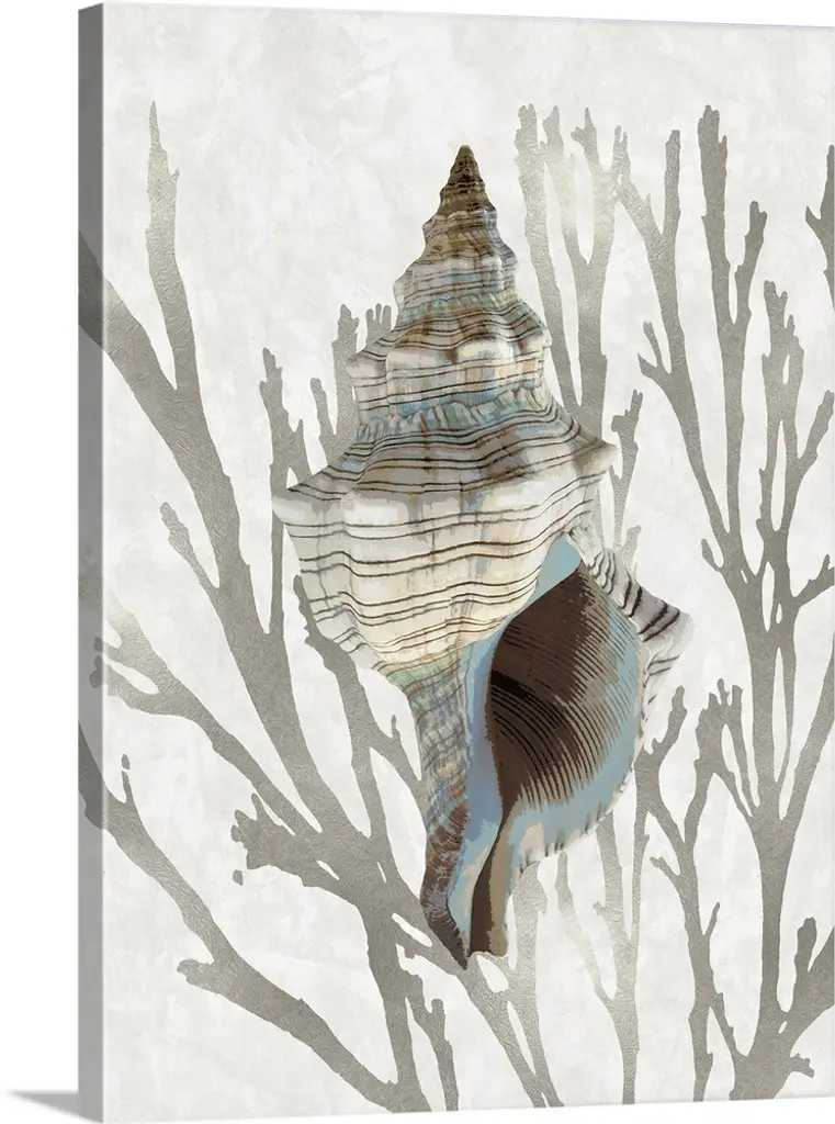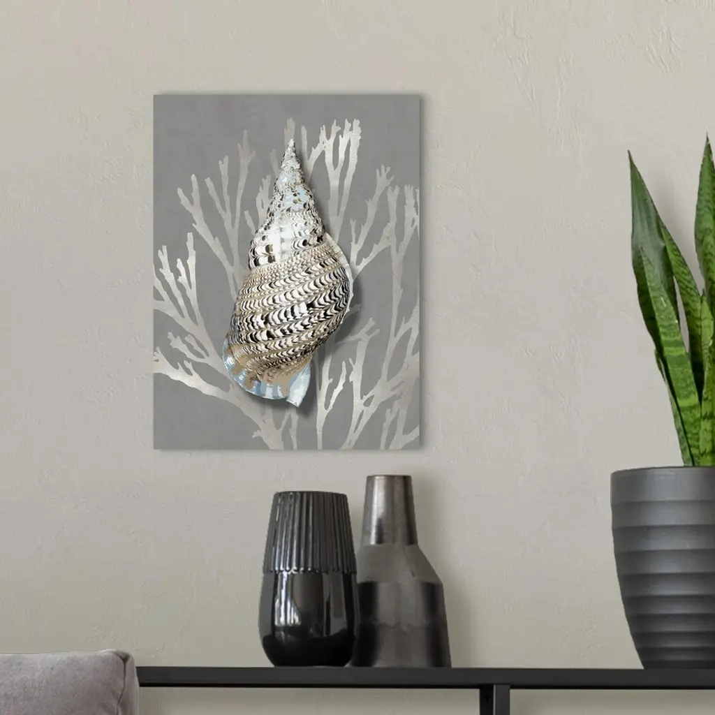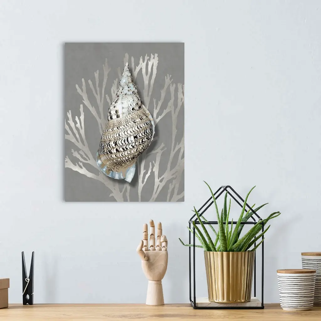 Shell Coral Silver on Gray I wall art for home and office decor. Discover canvas art prints, photos, mural, big canvas art and framed wall art in GreatBigCanvas.com's varied collections.