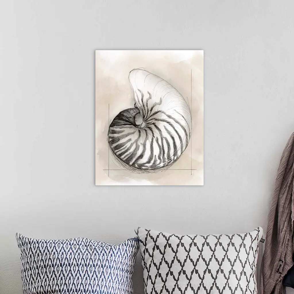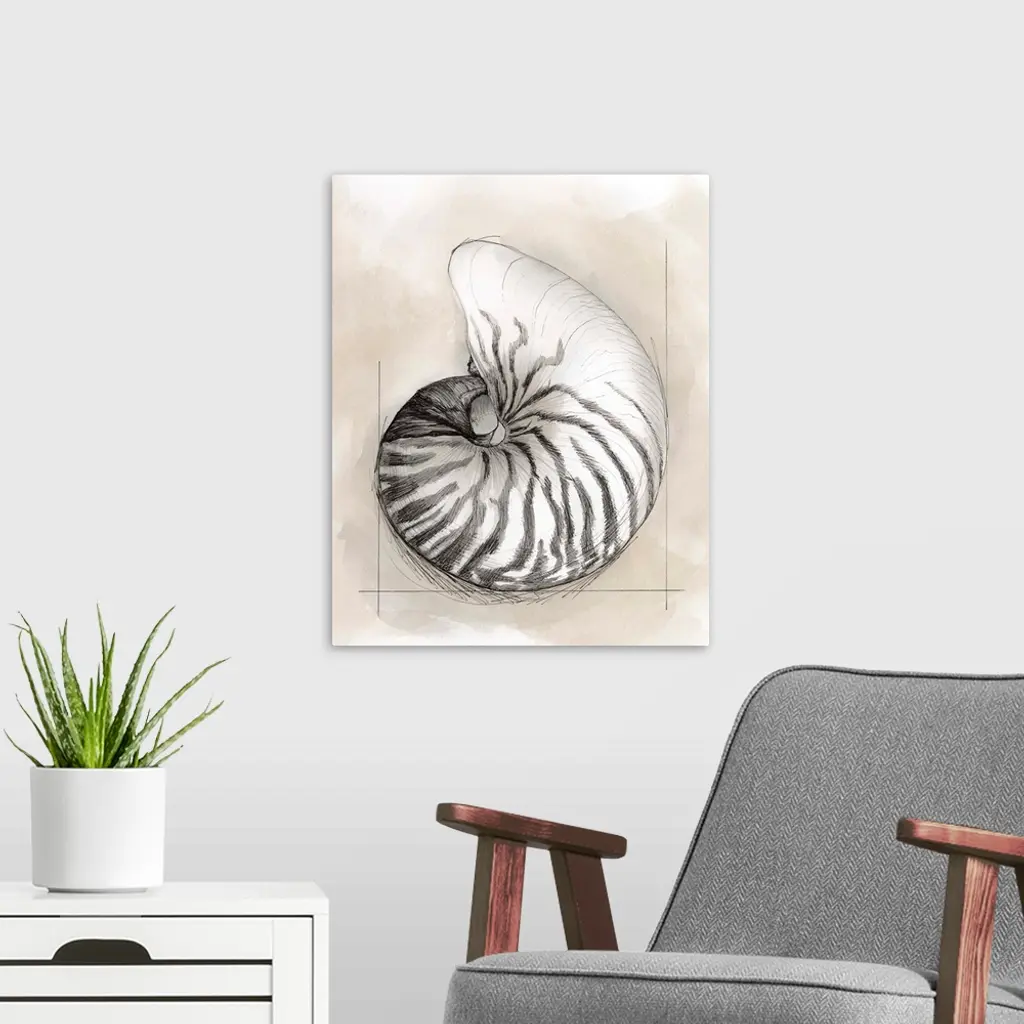 Shell Schematic II wall art for home and office decor. Discover canvas art prints, photos, mural, big canvas art and framed wall art in GreatBigCanvas.com's varied collections.