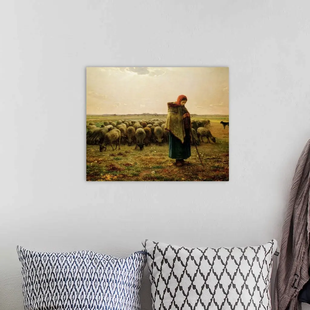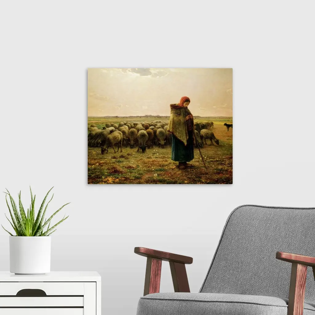 Shepherdess with her Flock, 1863 (oil on canvas); by Millet, Jean-Francois (1814-75)