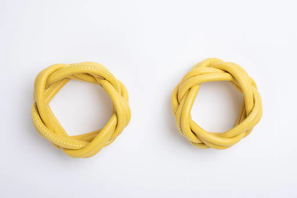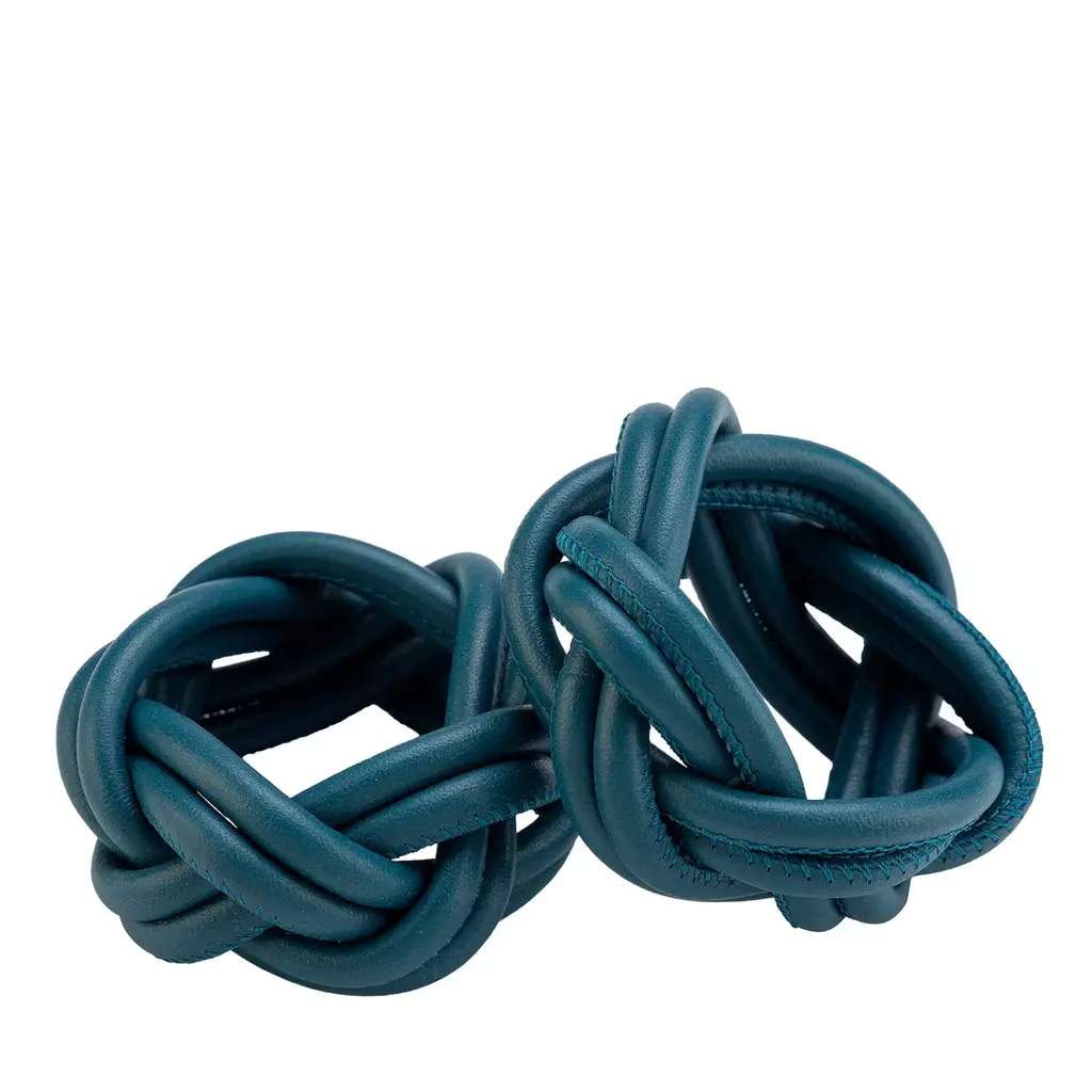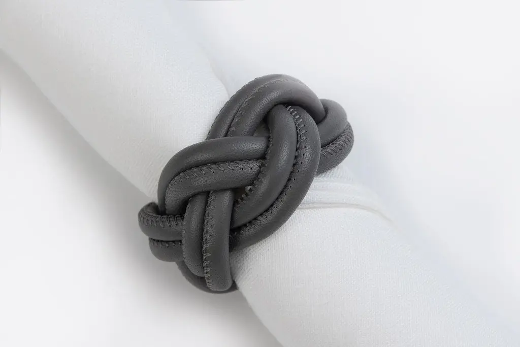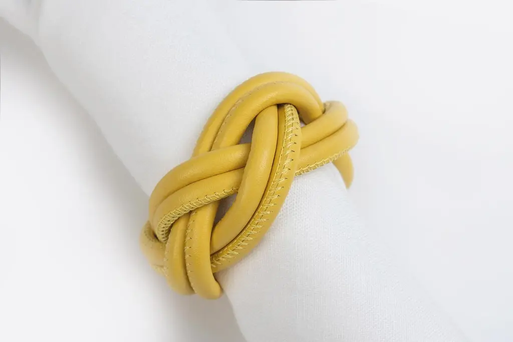 A unique take on an everyday object, this exquisite napkin holder elevates any table setting with its charm and visual balance. The piece is made using woven leather to create a functional decoration piece. This playful and elegant napkin holder will be a creative fixture at any modern table.