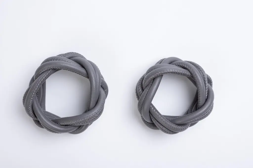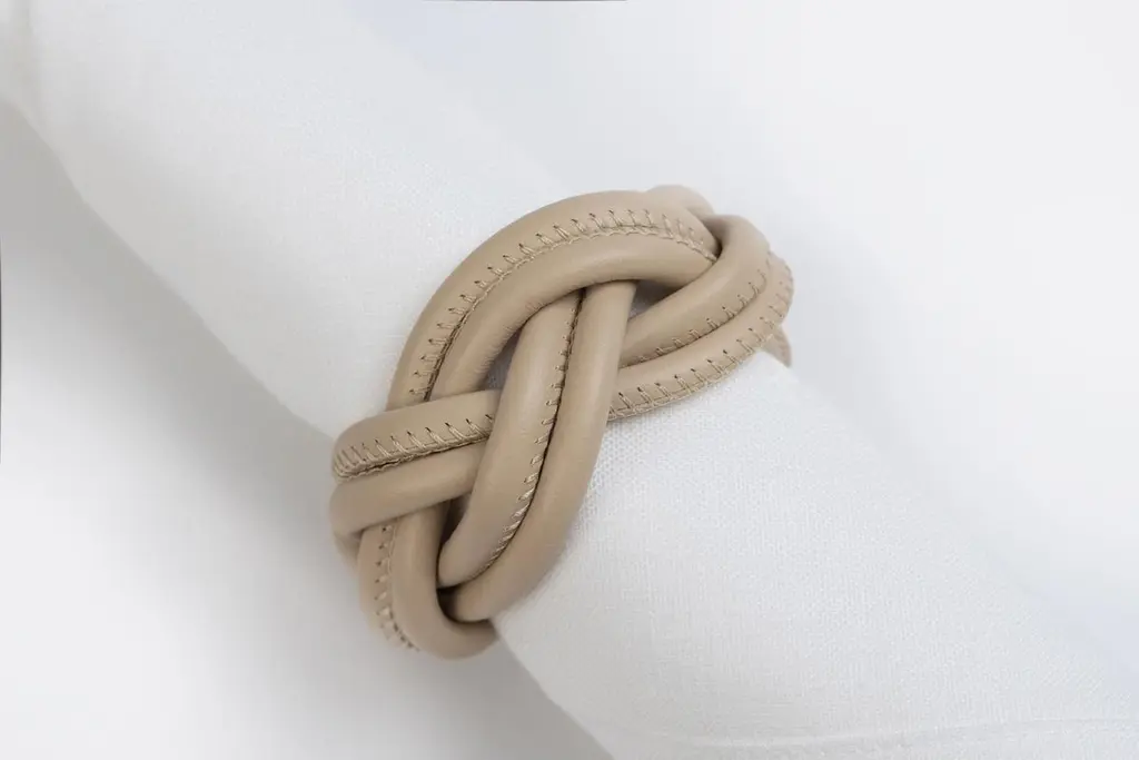 A unique take on an everyday object, this exquisite napkin holder elevates any table setting with its charm and visual balance. The piece is made using woven leather to create a functional decoration piece. This playful and elegant napkin holder will be a creative fixture at any modern table.