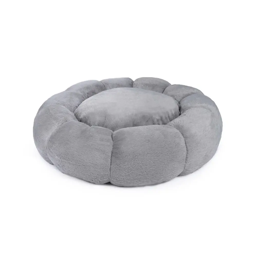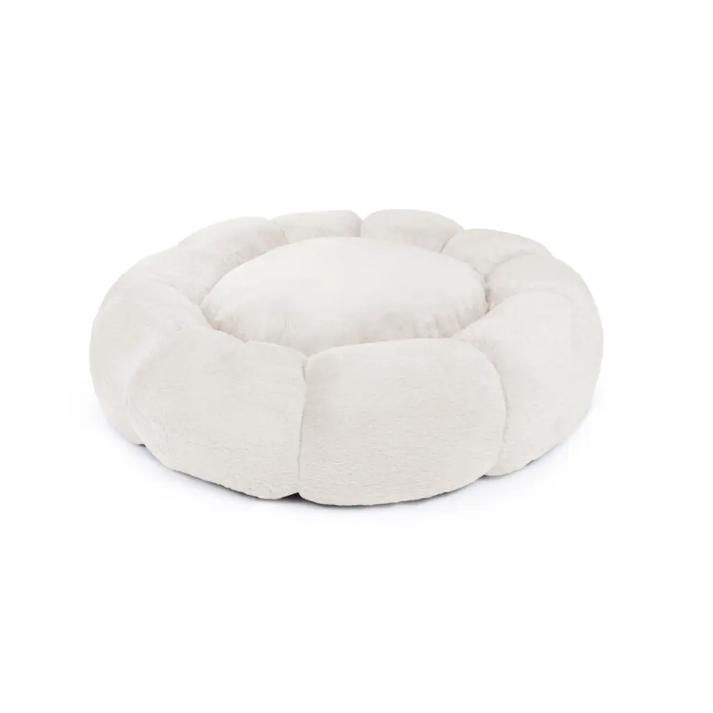 Show your love to your pet with our Sherry Kline Pets Original daisy flower round donut shape bed. Comfortable for small to extra-large dog breeds or cats. Our daisy flower shaped pet bed is designed to provide ultimate comfort and a cozy retreat for your furry friend. The plush cushioning and elevated bumper ensures a peaceful and restful sleep, promoting overall well-being. The elevated style bumper offers extra comfort for your pet to rest his/her head or relax their legs.The sleep and sitting area offer a reversible Ultra Plush fabric material. Your pet will relax and enjoy sitting and sleeping on our soft and cozy daisy bed. The ample size offers a secure and snug space for pets to nap or lounge while feeling safe and protected.
