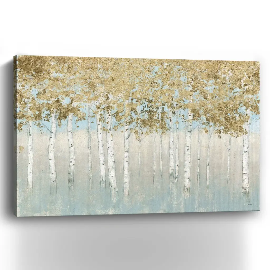 The golden leaves in this forest canvas print look glittering. It's bound to make any space look sophisticated. Our Gallery Wrap Canvas Prints are proudly assembled with high quality materials in California, USA. Each piece is printed on a thick, archival grade canvas using Giclee technology. It is then hand-stretched by our experienced artisans over solid pine bars, which will not warp over time. The final product is a piece personally crafted for you to confidently display on your wall. Care and Assembly: Ensure that the location of your piece has little to no exposure to heat, sunlight, and moisture. Wipe clean, only if needed. Each piece includes a sawtooth hanger to hang on your wall horizontally.