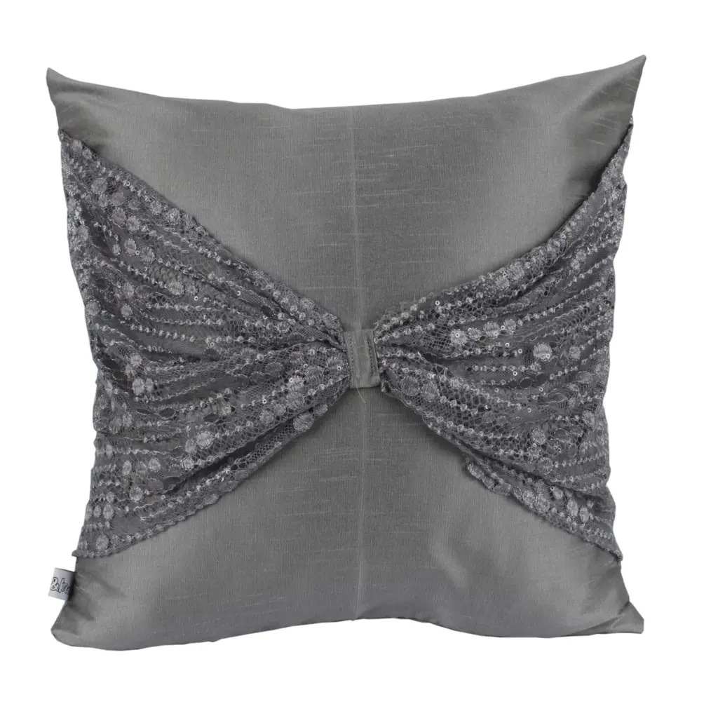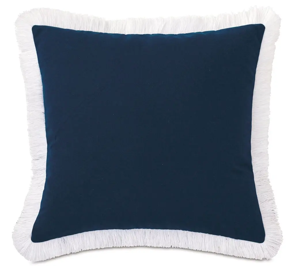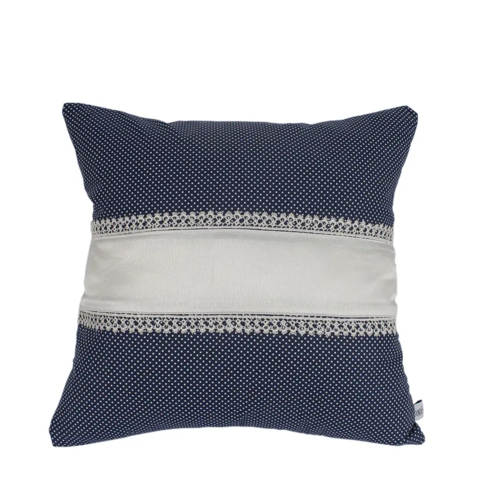 Blue satin cushion has shiny silver front border. The zig zag border completes the style. The cushion is closed by zip. The cushion comes with its inner cushion pad
