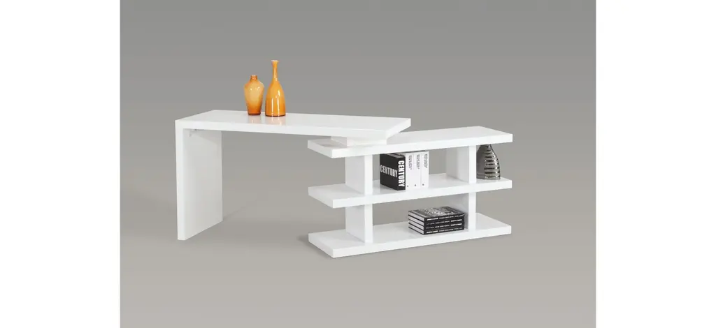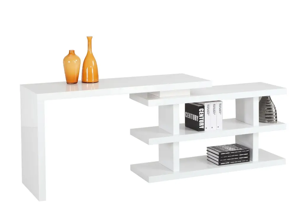An ideal choice for your home office. The turntable shelf base provides style and stability. It also features beautiful white gloss finish for a clean look. The desk can open from 20" to 53".