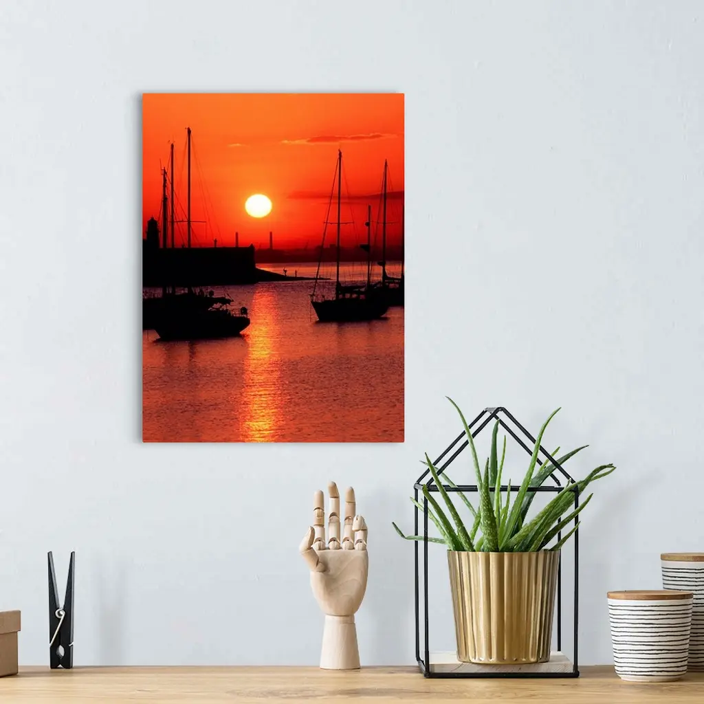 Ships at Sunset, Dun Laoghaire Harbour, Co Dublin, Ireland wall art for home and office decor. Discover canvas art prints, photos, mural, big canvas art and framed wall art in GreatBigCanvas.com's varied collections.