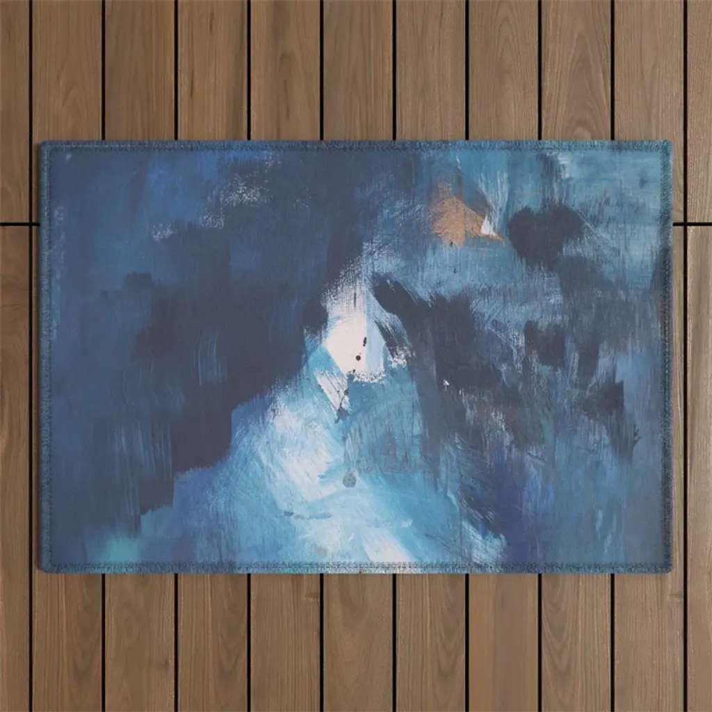 Ships In The Night: A Vibrant Abstract Mixed-Media Piece In Blues And Golds By Alyssa Hamilton Art Welcome Mat