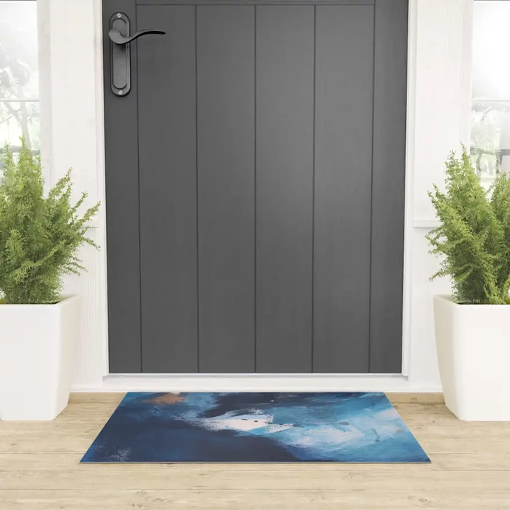 Ships In The Night: A Vibrant Abstract Mixed-Media Piece In Blues And Golds By Alyssa Hamilton Art Welcome Mat