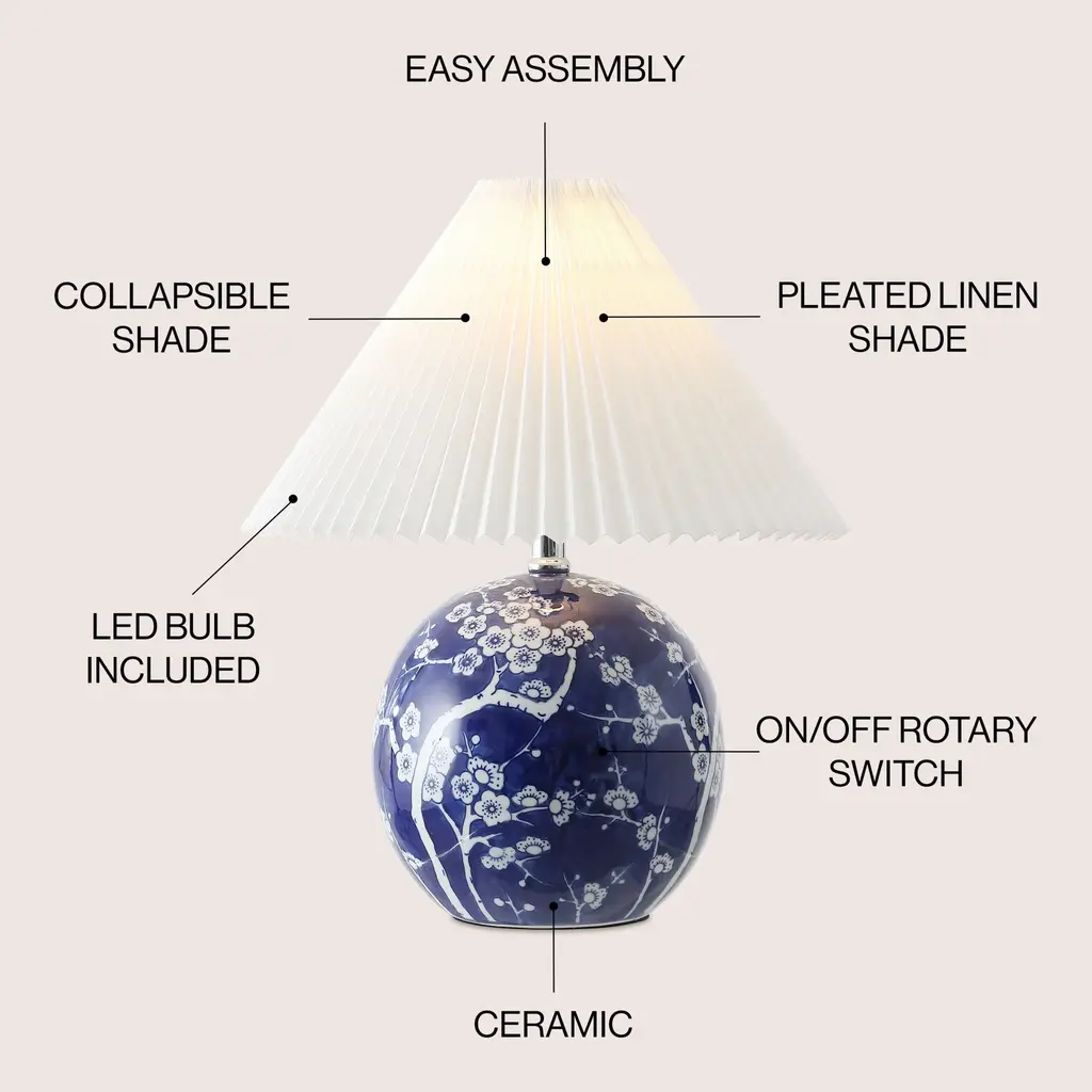 Shishen Cottage Classic Chinoiserie Ceramic Orb Led Table Lamp With Pleated Shade