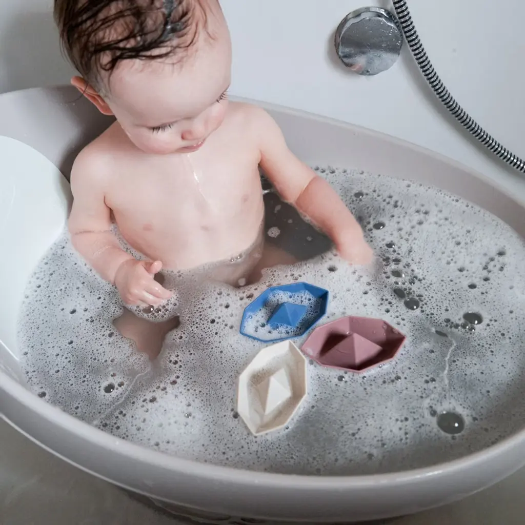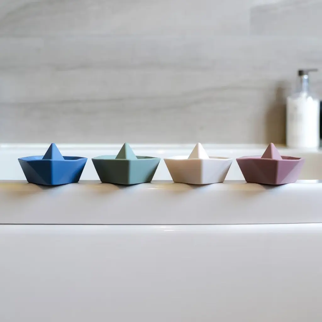 Set of 4 silicone stacking bath boat toys for lots of imaginative play at bath time from baby to toddler and beyond. Encourages fine motor skill development and imaginative playCreated for little hands. The soft silicone boats can be easily picked up and gripped for playCan be used anywhere, not just bath timeComes in a pack of 4. Each boat a different but complementary colourStackable for easy storageMould free with no holes to trap waterMade from food grade siliconeBPA, Phthalate, PAH Free and fully testedEasy to clean, simply wipe down with soapy water, rinse and leave to air dry