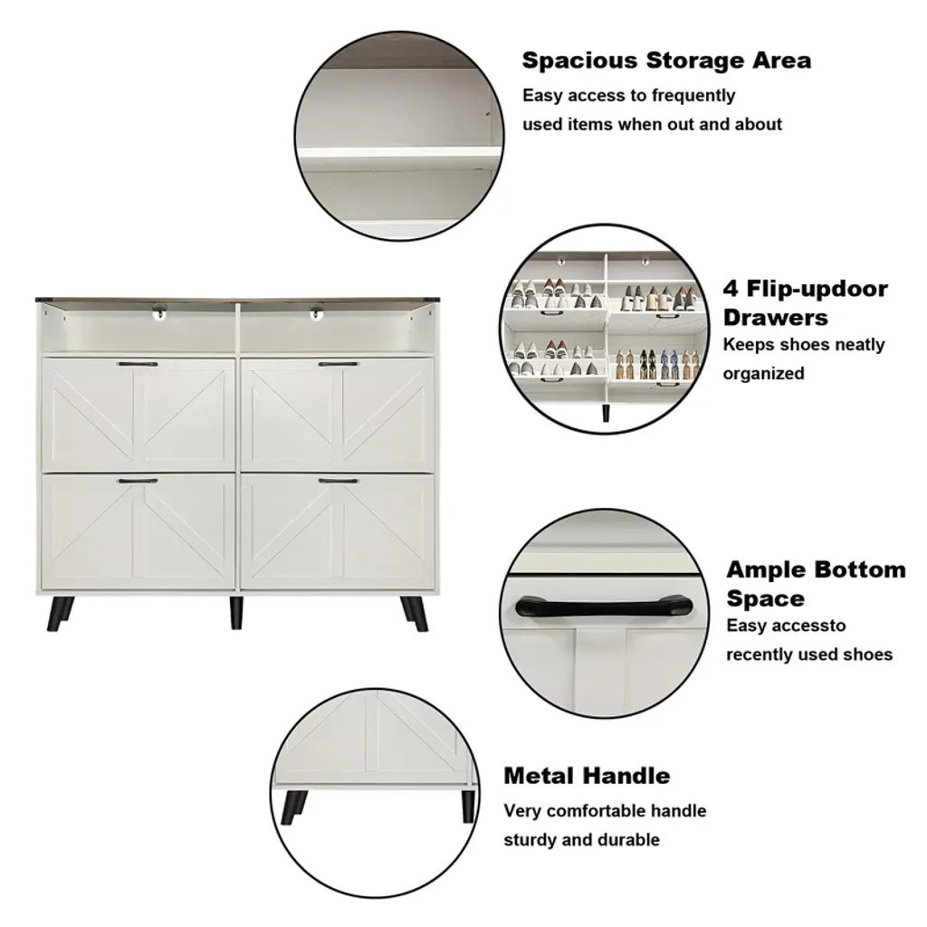 Shoe Storage Cabinet, Shoes Cabinet Storage For Entryway With 4 Flip Drawers