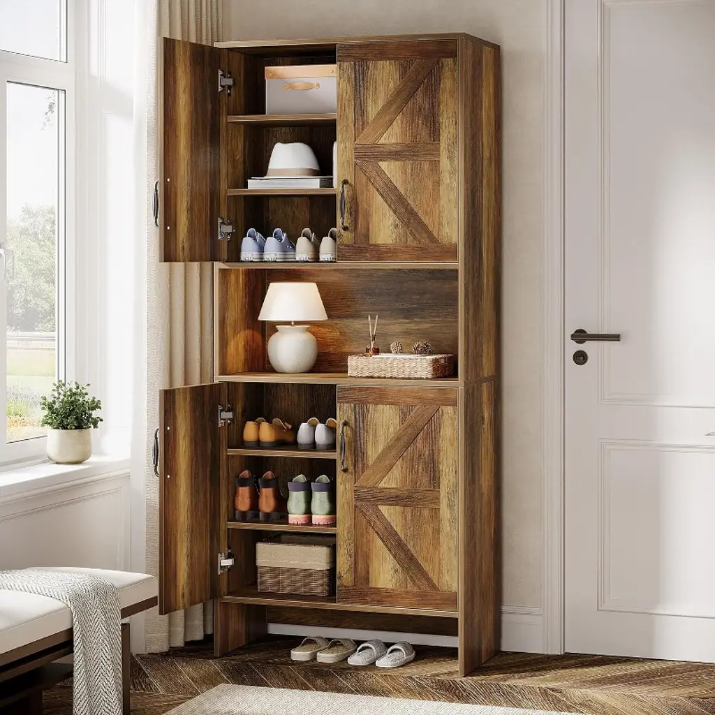Shoe Storage Cabinet, Shoes Cabinet Storage for Entryway with 4 Flip Drawers, Shoe Rack Cabinet with Open Shelves for Entryway