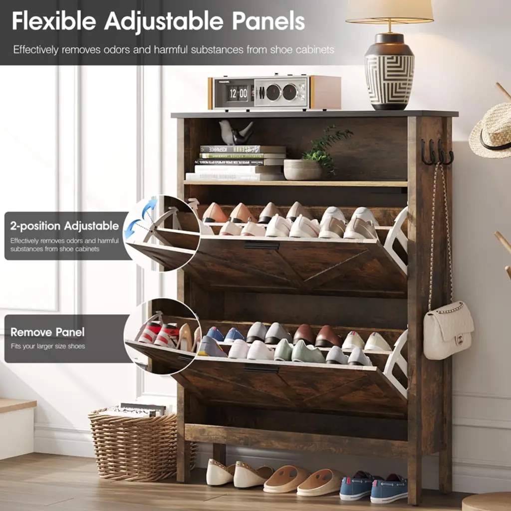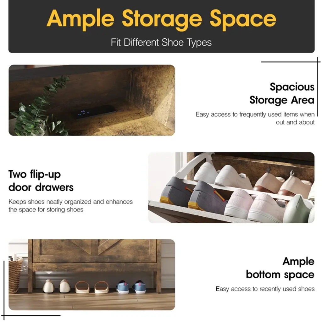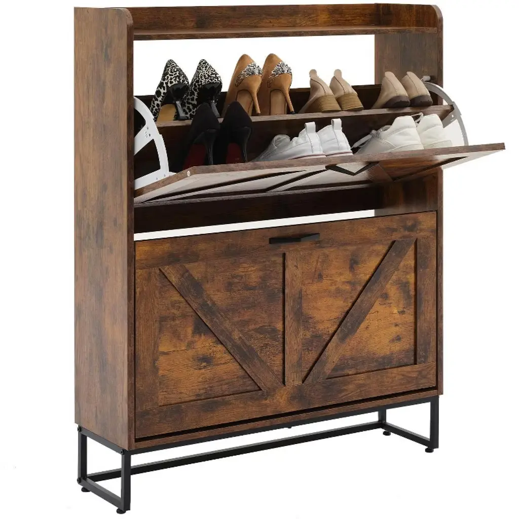 Shoe Storage Cabinet With 2 Flip Drawers,automatic Deodorization Function,brown