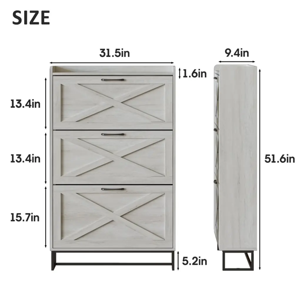 Shoe Storage Cabinet With 3 Flip Drawers,beige