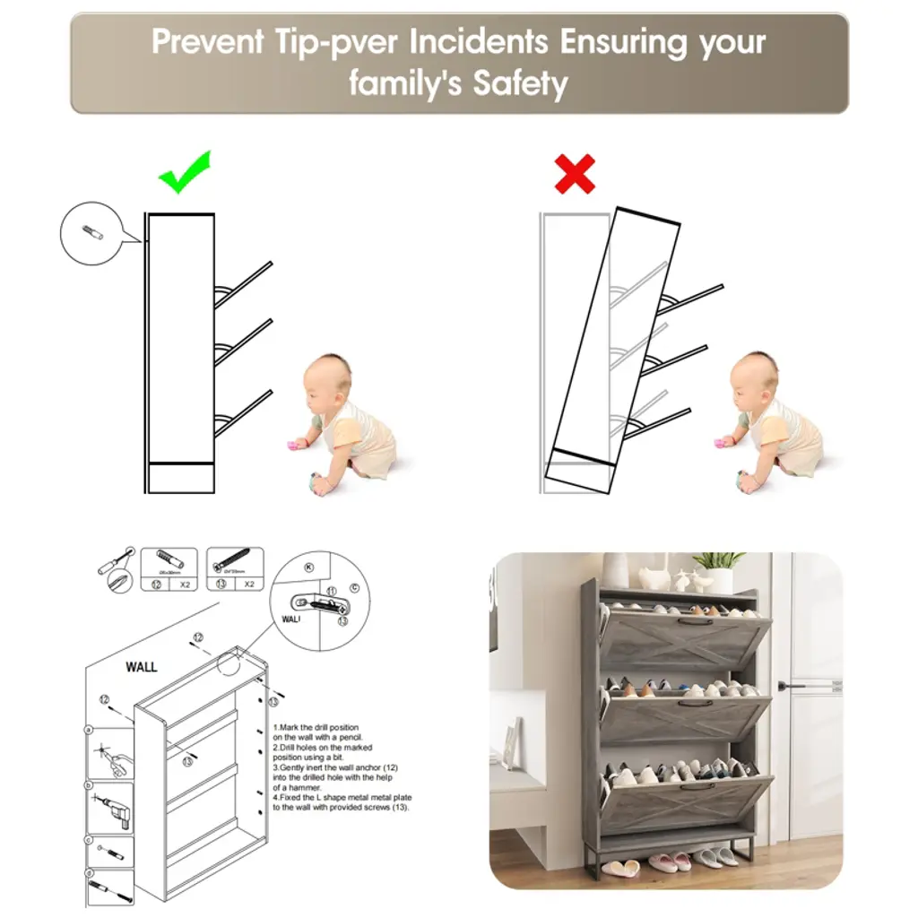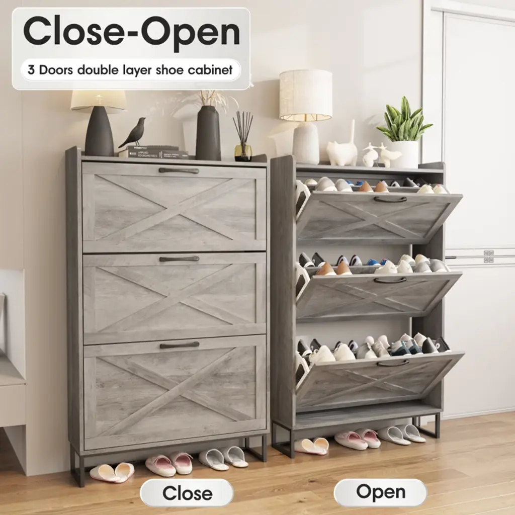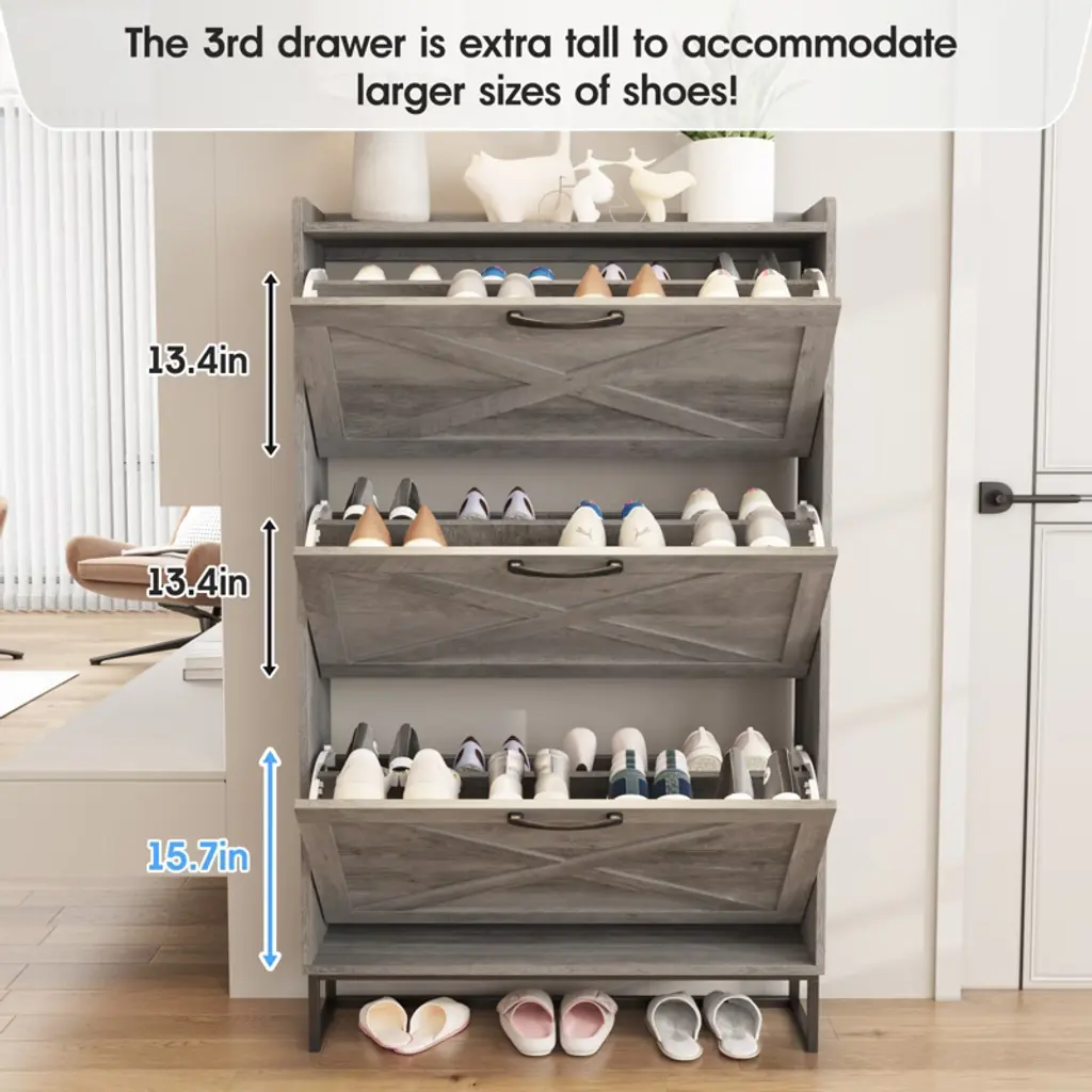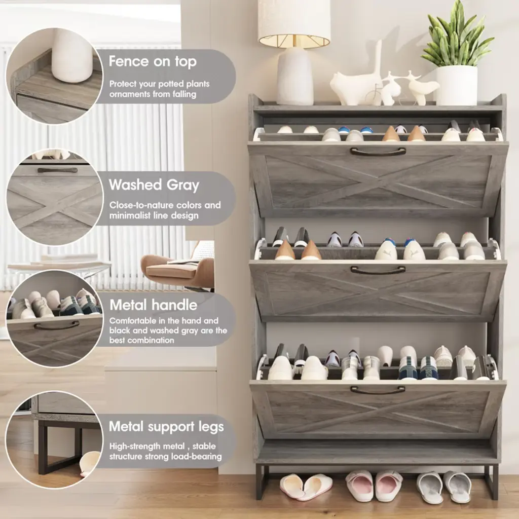 Shoe Storage Cabinet With 3 Flip Drawers,gray