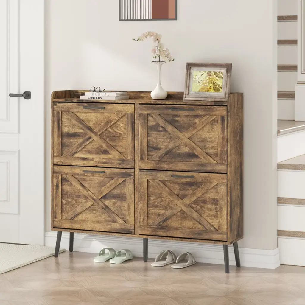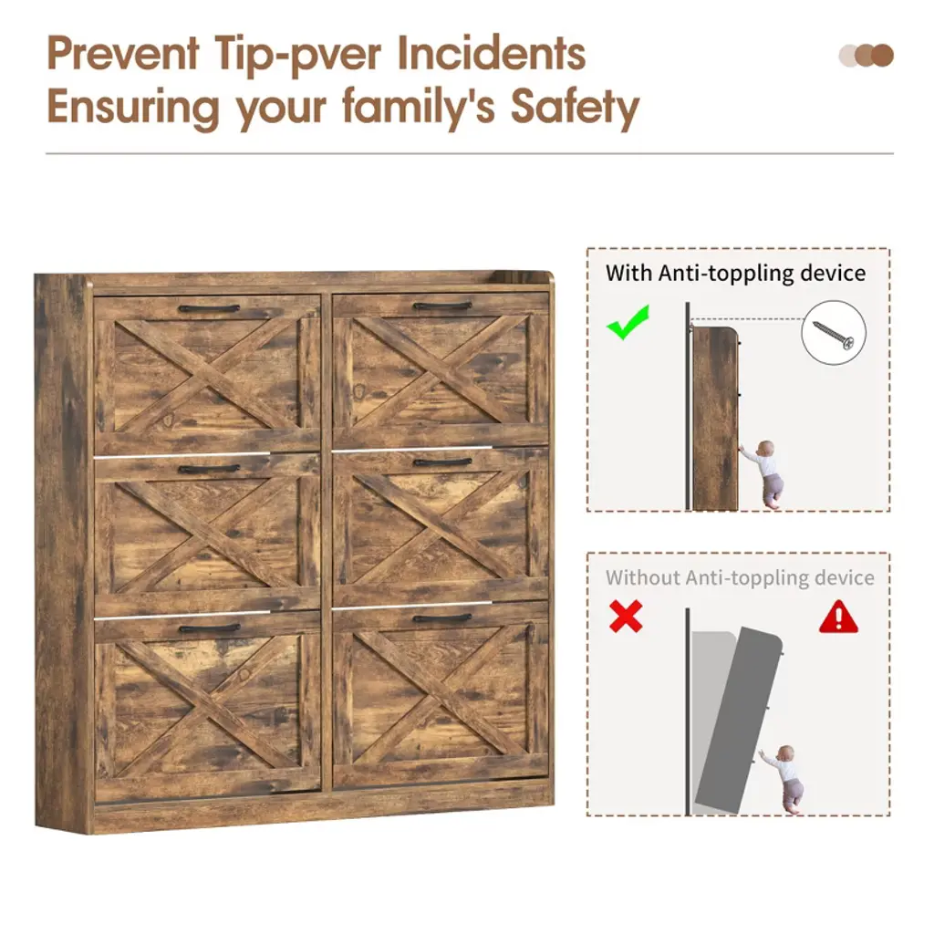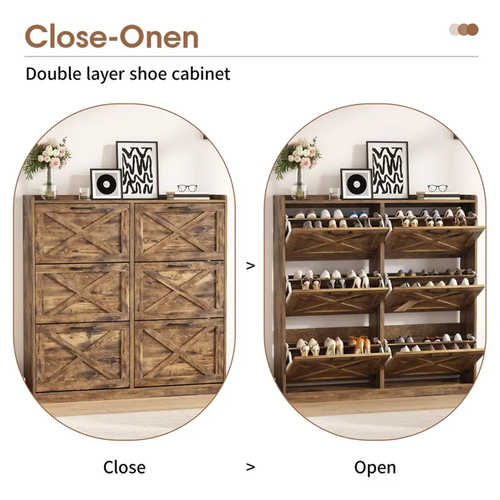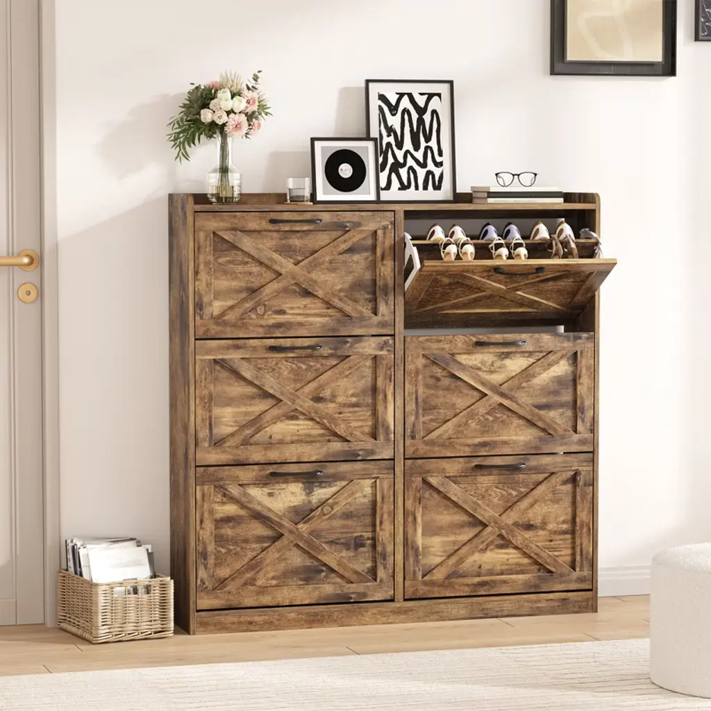 Shoe Storage Cabinet With 6 Flip Drawers,brown