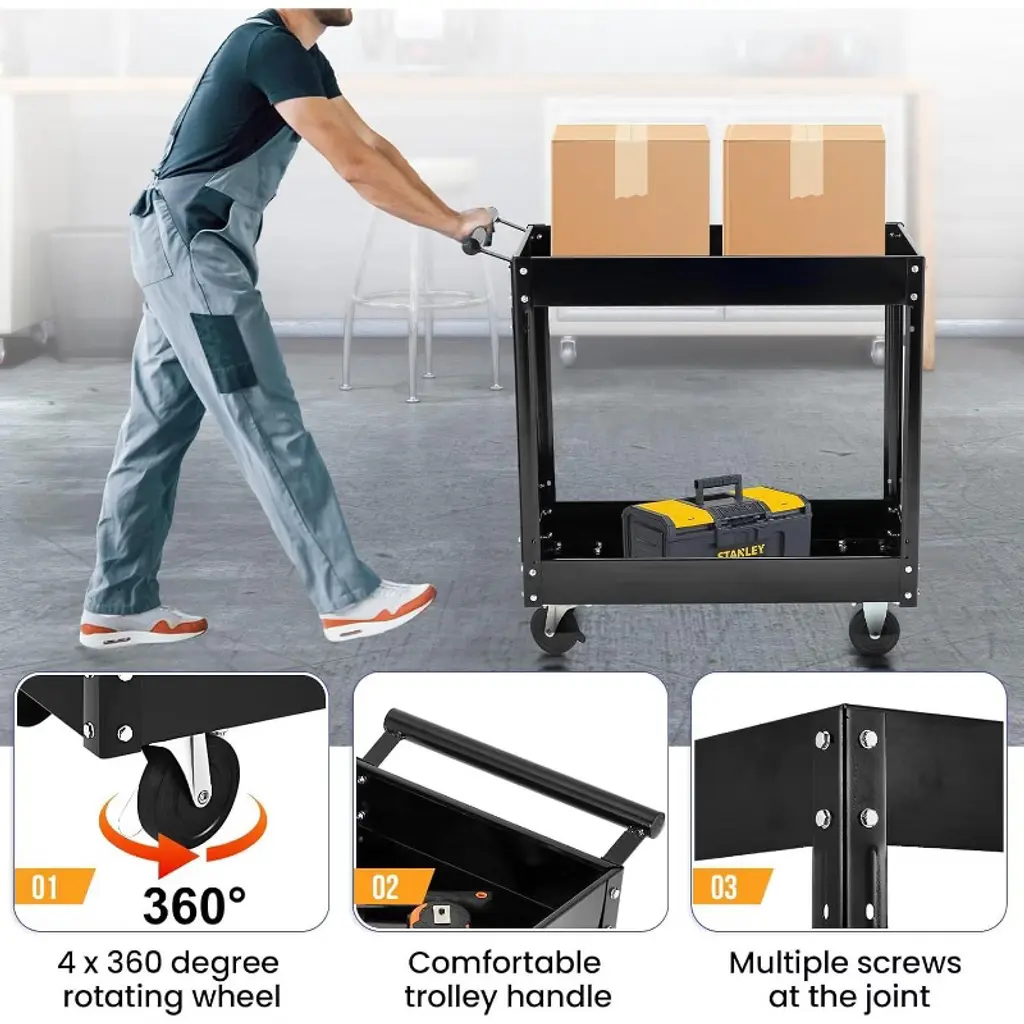 Shopping Cart, 2 Tier Rolling Storage Cart With Removable Crate - Black