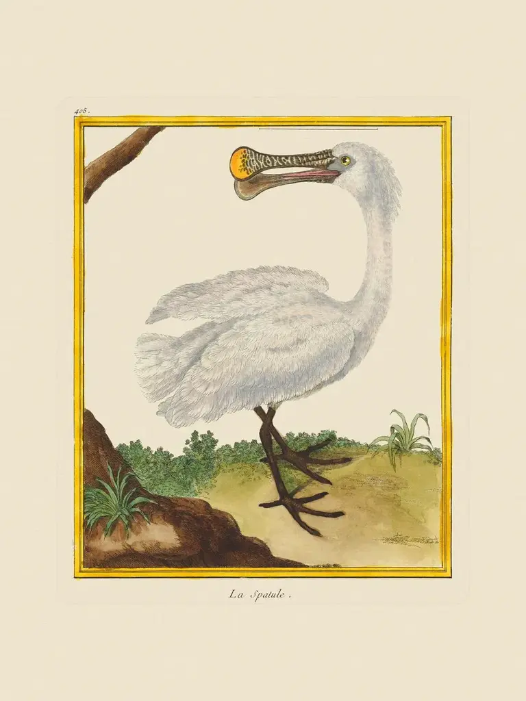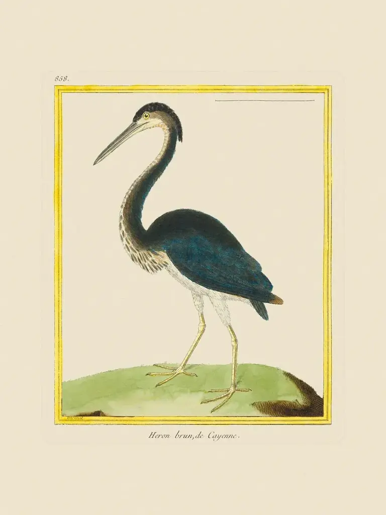 Set of eight unframed giclee reproductions of shore or water birds. Here we have a Great Blue Heron, Purple Heron, a Imperial Spoonbill, Night Heron a Bittern, some type of stork and 2 other herons. All prints have the bird names in French at the bottom if you would like to do further study. The original prints we reproduced these from were hand colored copperplate engraving and our quality is so good they look like the real thing. Image History: The giclee prints we make are from Francois Martinet's work with Buffon Histoire Naturelle des Oiseaux. The work was published between 1765 and 1780 by Edme Louis Daubenton in France. Each plate features a delicate yellow border, which many believe led to the development of French matting. Martinet was a prominent ornithological artist of the 1700s. He work closely with Count Georges-Louis Leclerc du Buffon on Histoire Naturelle des Oiseaux. The work is considered one of the most influential bird books of all time. Print: The giclee prints are made in USA and we only use the very best acid free cotton rag paper and archival inks to insure the prints looks its very best. The ink has a light fastness of over 160 years so it promises not to fade in our lifetime. Size of each print is 12 inches wide and 16 inches tall. This size is perfect for a 12x16 standard size frame if you do not use a mat. If you use a mat they will fit into a 16x20 inch frame with a 3 inch mat on top and sides with a 4 inch on the bottom. This is a set of 8 prints that are each 12x16 inches.