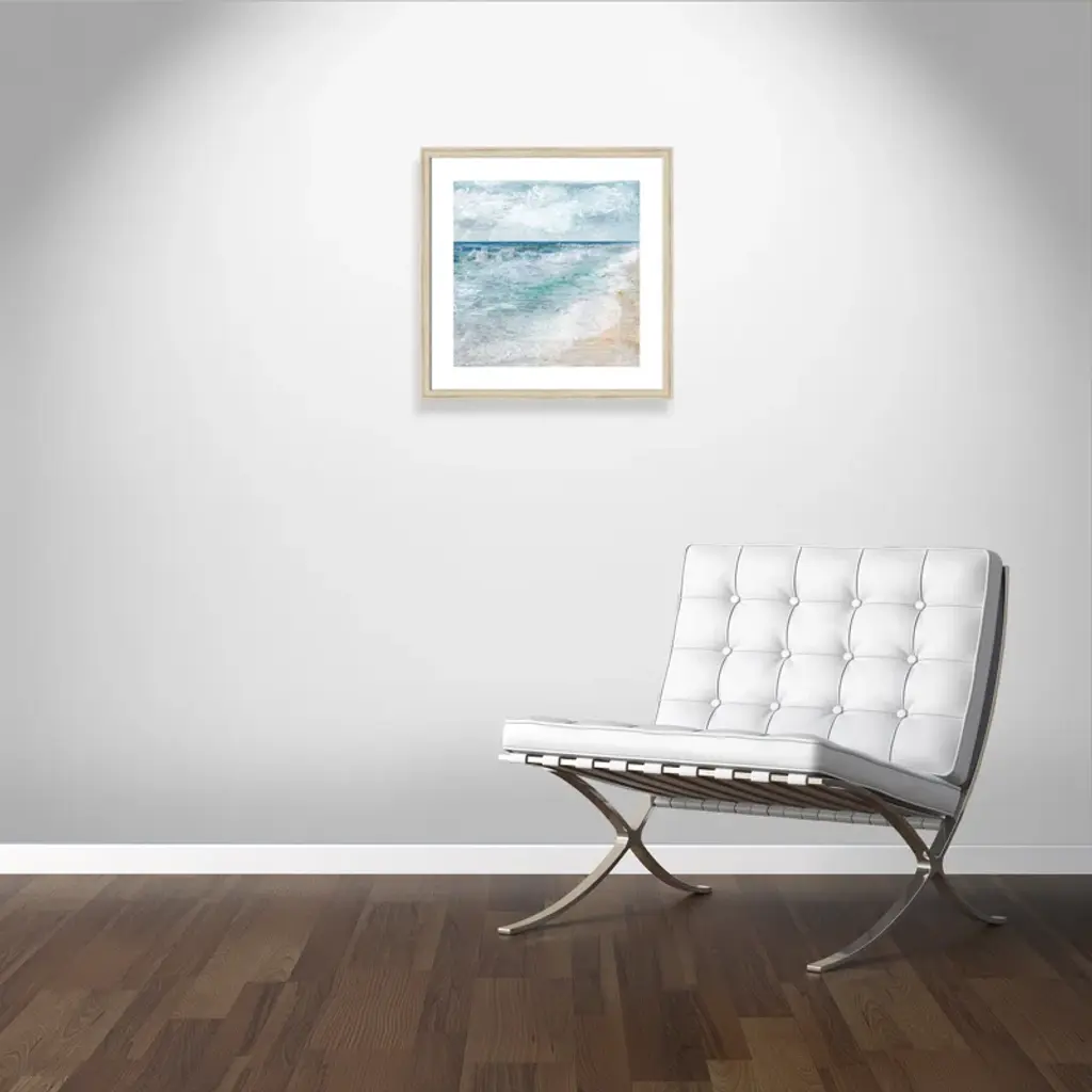 This tastefully understated coastal image captures the beauty of the seashore using a minimal color palette and subtle brushstrokes for a stunning transitional effect.