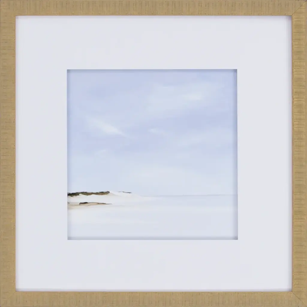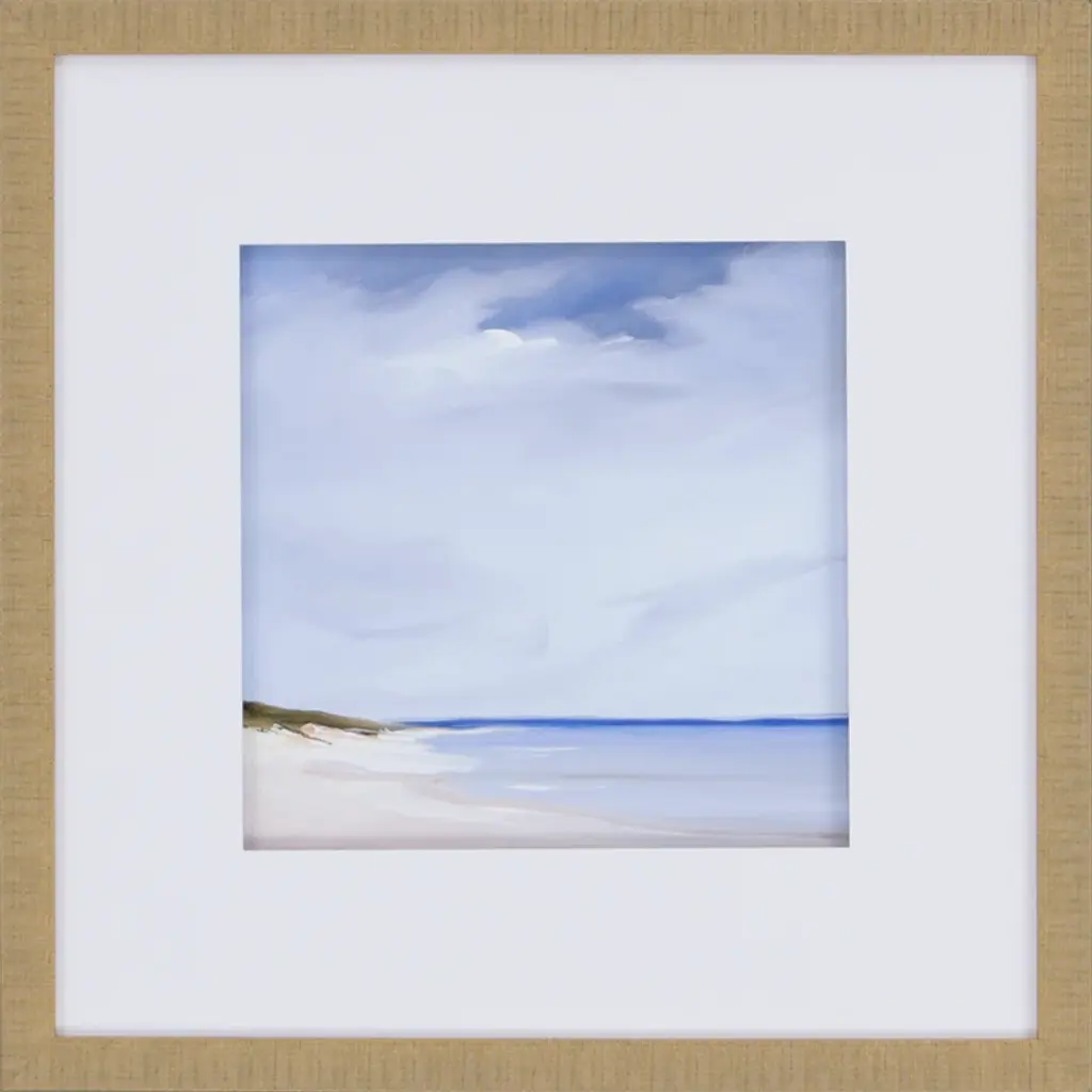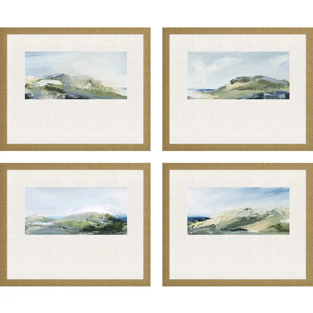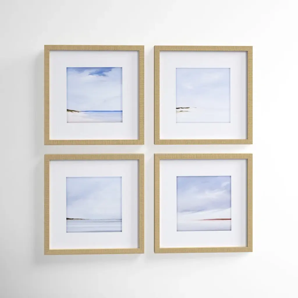 This 4-piece set of prints lets you enjoy the calm of your favorite beach getaway without ever leaving your home. Made in the USA, this set includes four different blue and white coastal giclee prints on fine art paper — all raised and matted. To really make the center shoreline pop, each print is framed with a ribbed gold-finished molding to artfully contrast the soft hues within. Make it yours: You can hang this set altogether to create an instant gallery wall, or space them throughout your space to add a cool-casual look throughout your room.