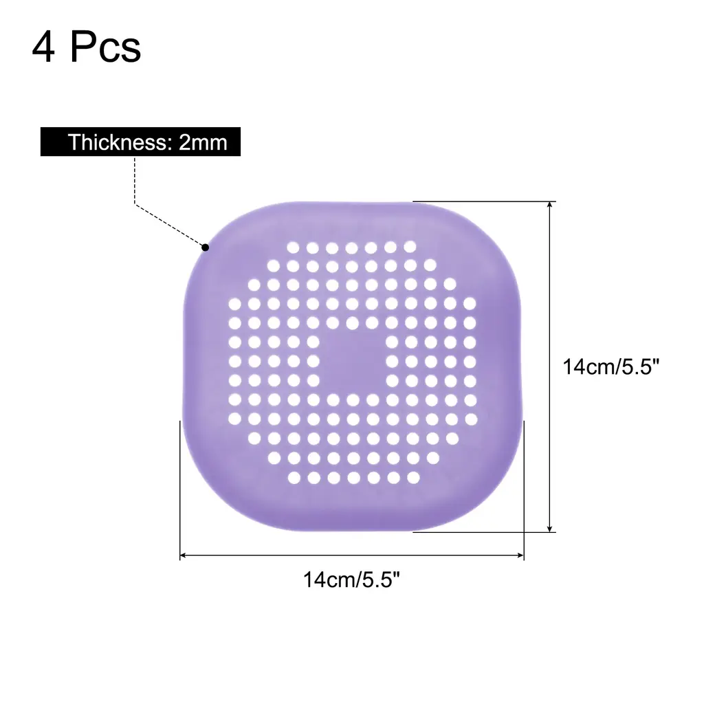 Description:1. The shower drain hair catcher is made of soft silicone material, which is non-slip, durable, and flexible, has good elasticity and wear resistance, and can be used for a long time.2. The drain hair catcher is equipped with integrated strong suction cups, its suction cups are not easy to separate from the drain cover and efficiently catch hair and debris, preventing clogs in your shower, kitchen, or bathroom tub, and can be easily removed for cleaning.3. Simply place the drain cover over the drain opening and press down to create a tight seal. Lift a corner of the silicone shower drain first when you want to remove and clean, regularly to maintain optimal performance.4. This drain cover can be used in showers, kitchen sinks, bathroom tubs, or any other drain where hair and debris may accumulate.5. Requires the hair drain to be flat with no raised obstructions. Otherwise, it can't be suctioned out.Specification:Material: SiliconeColor: GreyLength: 14cm/5.5"Width: 14cm/5.5"Thickness: 2mmPackage Included: 2pcs x shower drain hair catcher