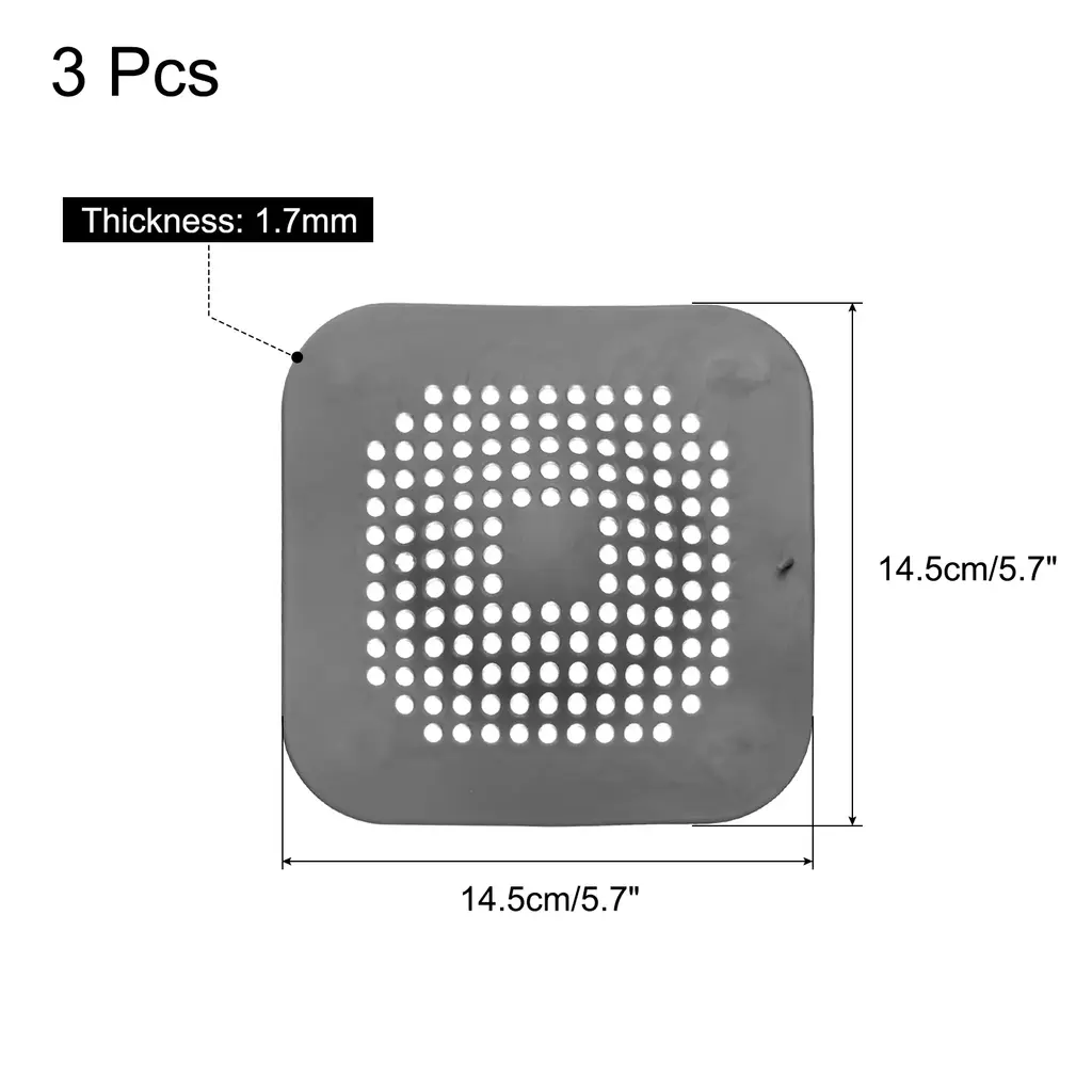 Description:1. The shower drain hair catcher is made of soft silicone material, which is non-slip, durable, and flexible, has good elasticity and wear resistance, and can be used for a long time.1.7. The drain hair catcher is equipped with integrated strong suction cups, its suction cups are not easy to separate from the drain cover and efficiently catch hair and debris, preventing clogs in your shower, kitchen, or bathroom tub, and can be easily removed for cleaning.3. Simply place the drain cover over the drain opening and press down to create a tight seal. Lift a corner of the silicone shower drain first when you want to remove and clean, regularly to maintain optimal performance.4. This drain cover can be used in showers, kitchen sinks, bathroom tubs, or any other drain where hair and debris may accumulate.5. Requires the hair drain to be flat with no raised obstructions. Otherwise, it can't be suctioned out.Specification:Material: SiliconeColor: WhiteLength: 14.5cm/5.7"Width: 14.5cm/5.7"Thickness: 1.7mmPackage Included: 3pcs x shower drain hair catcher