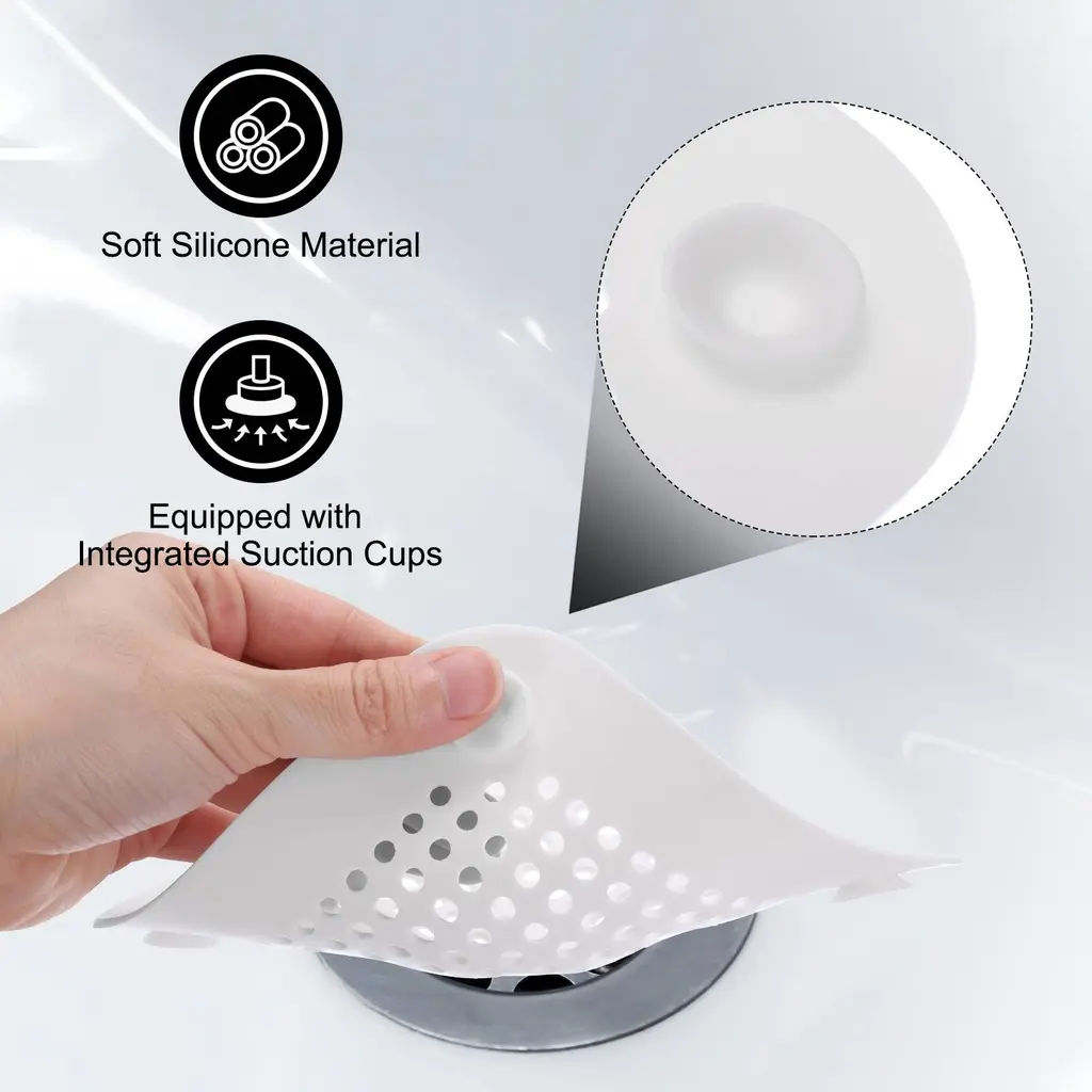 Description:1. The shower drain hair catcher is made of soft silicone material, which is non-slip, durable, and flexible, has good elasticity and wear resistance, and can be used for a long time.1.7. The drain hair catcher is equipped with integrated strong suction cups, its suction cups are not easy to separate from the drain cover and efficiently catch hair and debris, preventing clogs in your shower, kitchen, or bathroom tub, and can be easily removed for cleaning.3. Simply place the drain cover over the drain opening and press down to create a tight seal. Lift a corner of the silicone shower drain first when you want to remove and clean, regularly to maintain optimal performance.4. This drain cover can be used in showers, kitchen sinks, bathroom tubs, or any other drain where hair and debris may accumulate.5. Requires the hair drain to be flat with no raised obstructions. Otherwise, it can't be suctioned out.Specification:Material: SiliconeColor: WhiteLength: 14.5cm/5.7"Width: 14.5cm/5.7"Thickness: 1.7mmPackage Included: 3pcs x shower drain hair catcher
