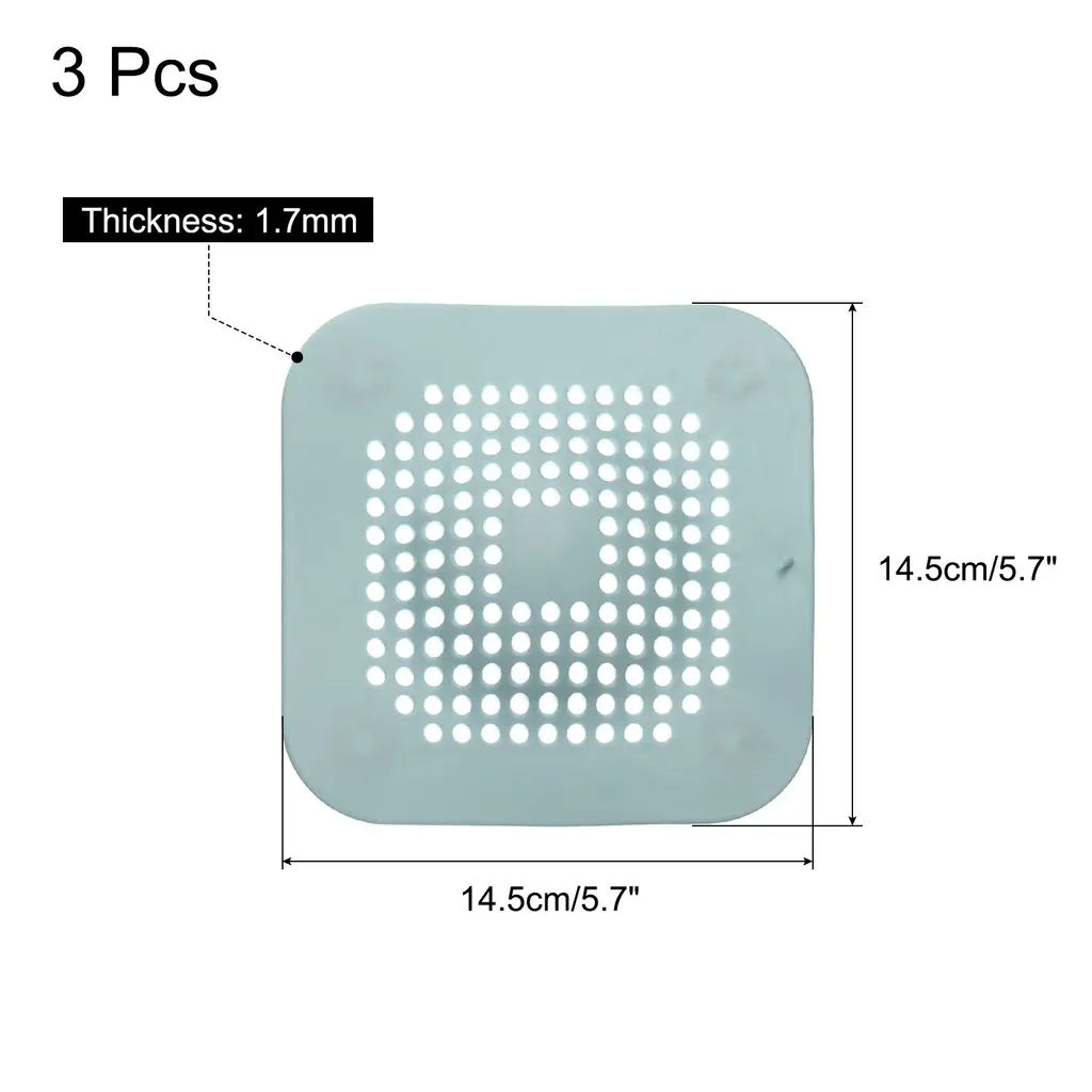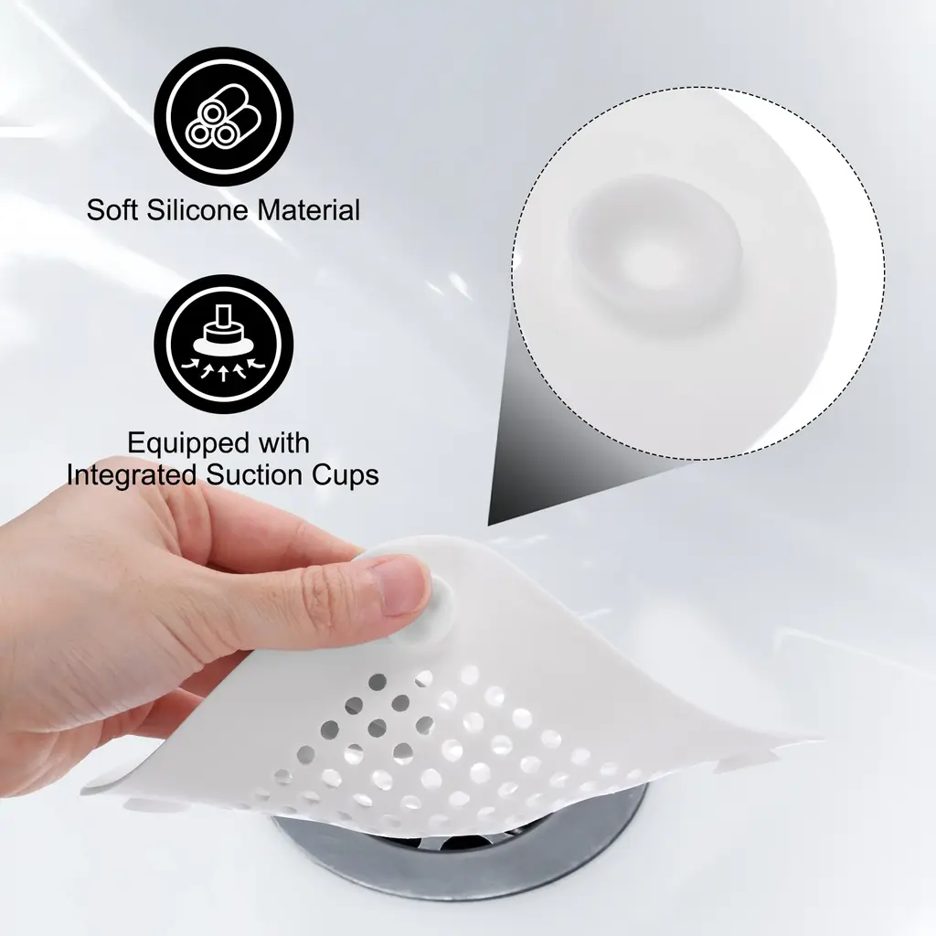 Description:1. The shower drain hair catcher is made of soft silicone material, which is non-slip, durable, and flexible, has good elasticity and wear resistance, and can be used for a long time.1.7. The drain hair catcher is equipped with integrated strong suction cups, its suction cups are not easy to separate from the drain cover and efficiently catch hair and debris, preventing clogs in your shower, kitchen, or bathroom tub, and can be easily removed for cleaning.3. Simply place the drain cover over the drain opening and press down to create a tight seal. Lift a corner of the silicone shower drain first when you want to remove and clean, regularly to maintain optimal performance.4. This drain cover can be used in showers, kitchen sinks, bathroom tubs, or any other drain where hair and debris may accumulate.5. Requires the hair drain to be flat with no raised obstructions. Otherwise, it can't be suctioned out.Specification:Material: SiliconeColor: WhiteLength: 14.5cm/5.7"Width: 14.5cm/5.7"Thickness: 1.7mmPackage Included: 3pcs x shower drain hair catcher