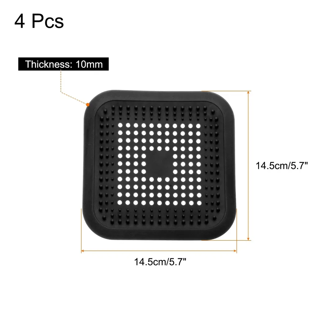 Shower Drain Hair Catcher 5.7" Dia Square Shower Drainer For Bathroom - Black - 4Pcs
