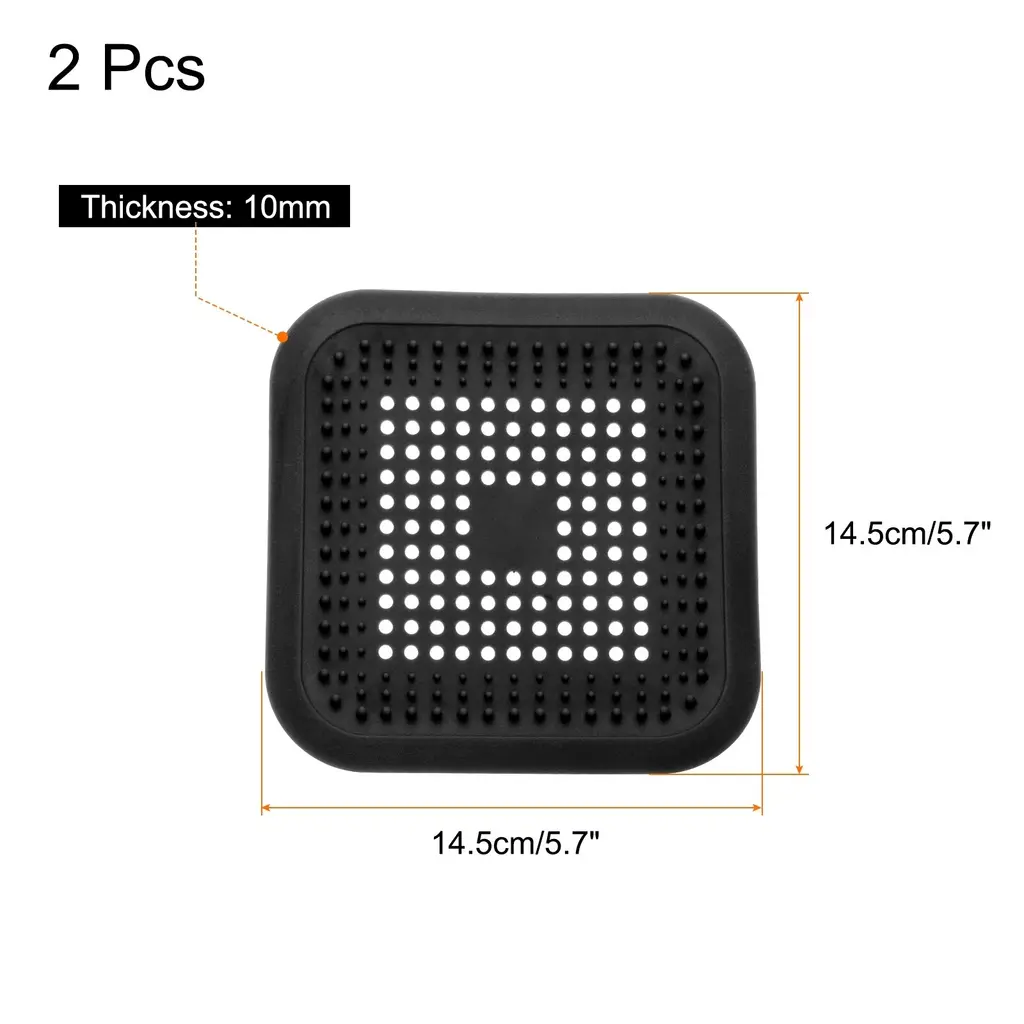 Description:1. The shower drain hair catcher is made of soft silicone material, which is non-slip, durable, and flexible, has good elasticity and wear resistance, and can be used for a long time.2. The drain hair catcher is equipped with integrated strong suction cups, its suction cups are not easy to separate from the drain cover and efficiently catch hair and debris, preventing clogs in your shower, kitchen, or bathroom tub, and can be easily removed for cleaning.3. Simply place the drain cover over the drain opening and press down to create a tight seal. Lift a corner of the silicone shower drain first when you want to remove and clean, regularly to maintain optimal performance.4. This drain cover can be used in showers, kitchen sinks, bathroom tubs, or any other drain where hair and debris may accumulate.5. Requires the hair drain to be flat with no raised obstructions. Otherwise, it can't be suctioned out.Specification:Material: SiliconeColor: GreyLength: 14.5cm/5.7"Width: 14.5cm/5.7"Thickness: 2mmPackage Included: 2pcs x shower drain hair catcher