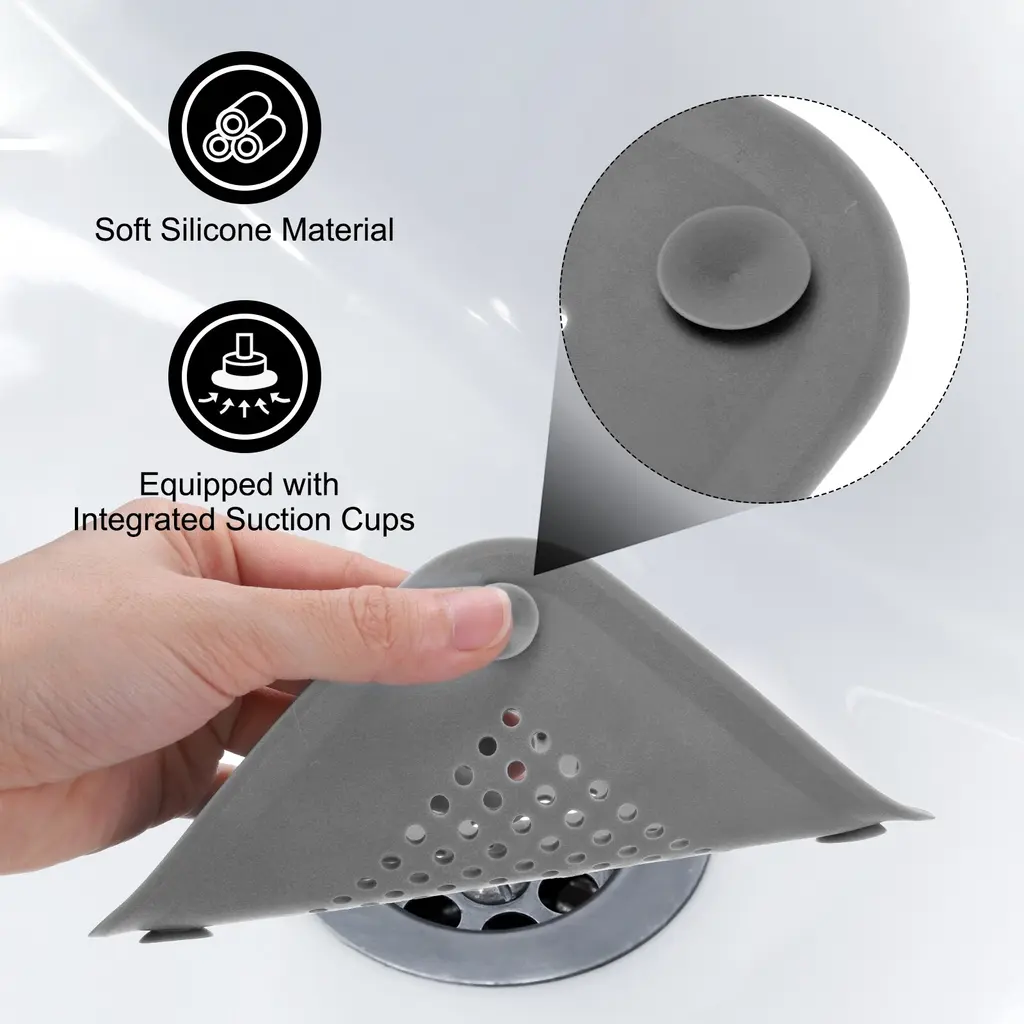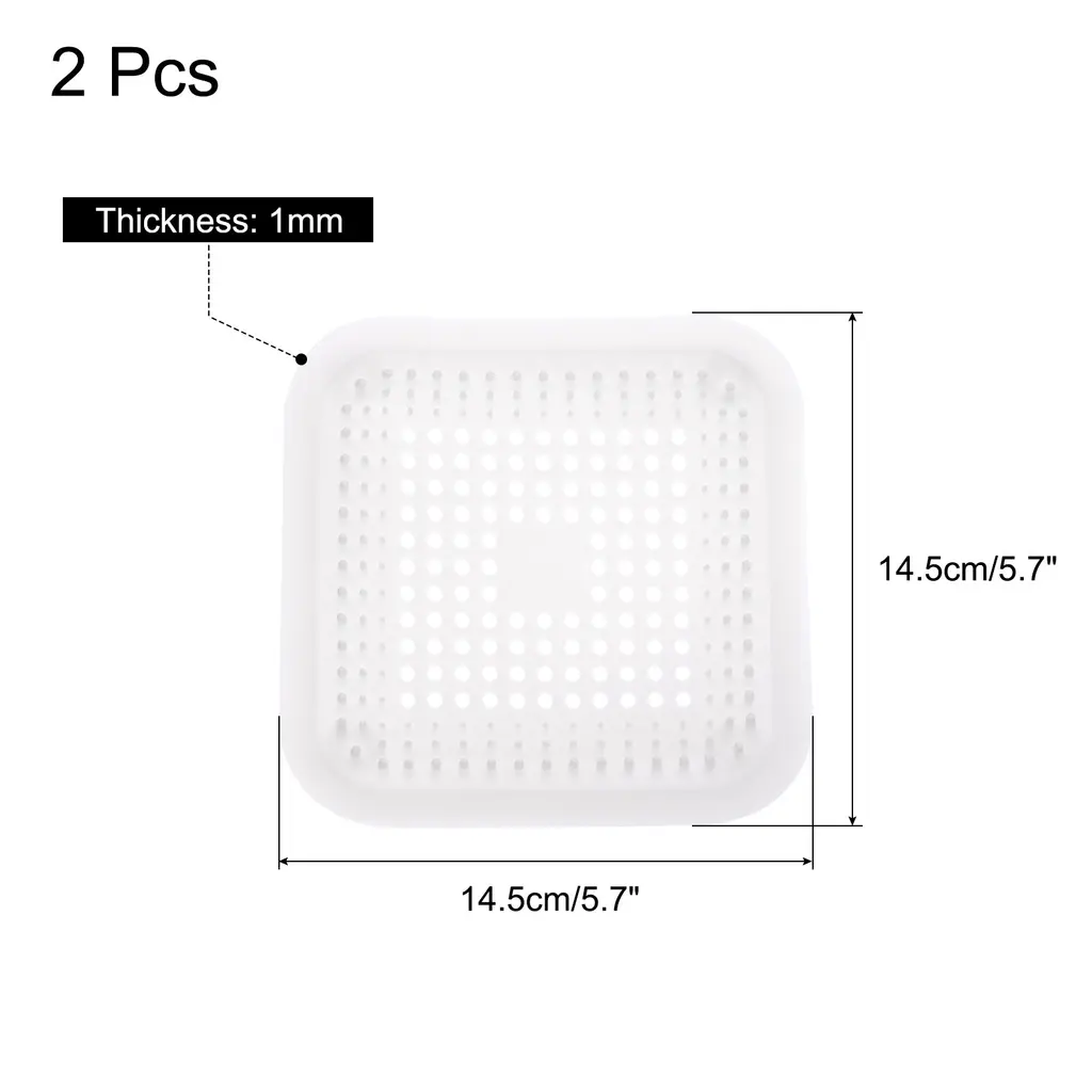 Description:1. The shower drain hair catcher is made of soft silicone material, which is non-slip, durable, and flexible, has good elasticity and wear resistance, and can be used for a long time.2. The drain hair catcher is equipped with integrated strong suction cups, its suction cups are not easy to separate from the drain cover and efficiently catch hair and debris, preventing clogs in your shower, kitchen, or bathroom tub, and can be easily removed for cleaning.3. Simply place the drain cover over the drain opening and press down to create a tight seal. Lift a corner of the silicone shower drain first when you want to remove and clean, regularly to maintain optimal performance.4. This drain cover can be used in showers, kitchen sinks, bathroom tubs, or any other drain where hair and debris may accumulate.5. Requires the hair drain to be flat with no raised obstructions. Otherwise, it can't be suctioned out.Specification:Material: SiliconeColor: GreyLength: 14.5cm/5.7"Width: 14.5cm/5.7"Thickness: 2mmPackage Included: 2pcs x shower drain hair catcher
