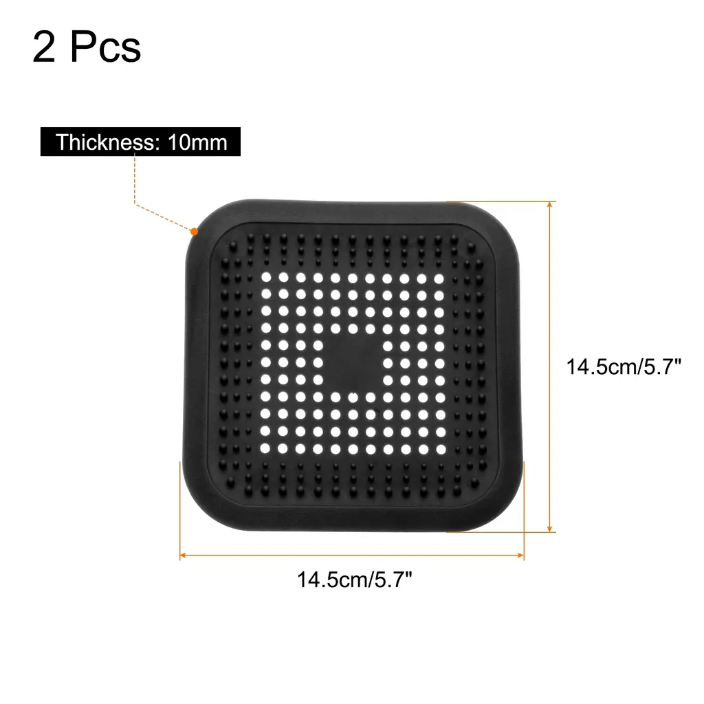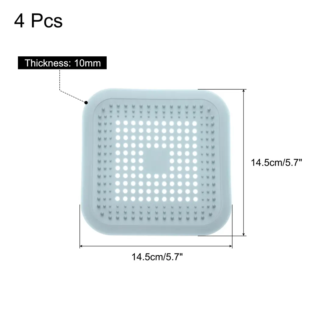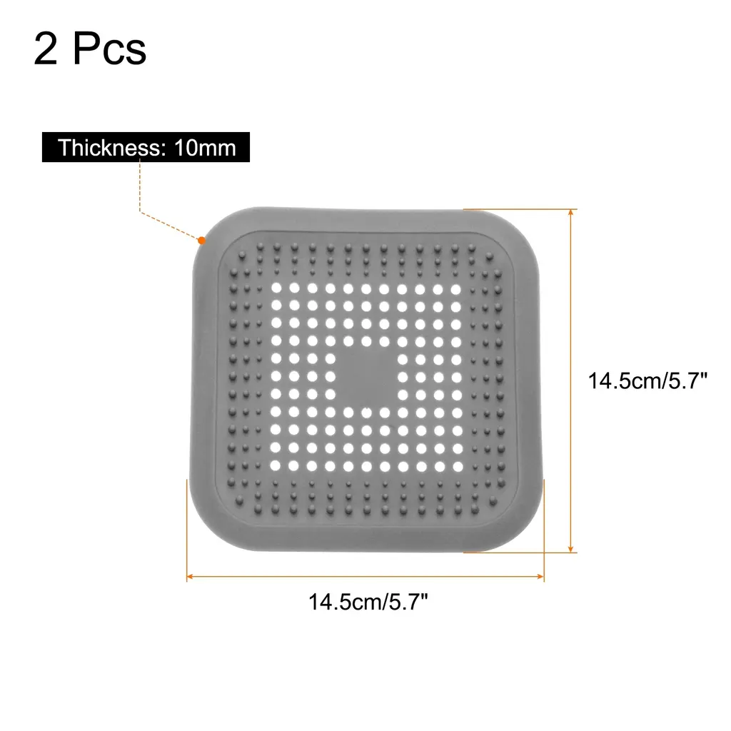 Description:1. The shower drain hair catcher is made of soft silicone material, which is non-slip, durable, and flexible, has good elasticity and wear resistance, and can be used for a long time.2. The drain hair catcher is equipped with integrated strong suction cups, its suction cups are not easy to separate from the drain cover and efficiently catch hair and debris, preventing clogs in your shower, kitchen, or bathroom tub, and can be easily removed for cleaning.3. Simply place the drain cover over the drain opening and press down to create a tight seal. Lift a corner of the silicone shower drain first when you want to remove and clean, regularly to maintain optimal performance.4. This drain cover can be used in showers, kitchen sinks, bathroom tubs, or any other drain where hair and debris may accumulate.5. Requires the hair drain to be flat with no raised obstructions. Otherwise, it can't be suctioned out.Specification:Material: SiliconeColor: GreyLength: 14.5cm/5.7"Width: 14.5cm/5.7"Thickness: 2mmPackage Included: 2pcs x shower drain hair catcher