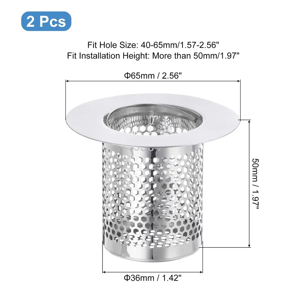 Description[Material] - The shower drain strainer is made of 304 Stainless Steel, it is easy to rust and deform, with high wear resistance and long-lasting durability. The outer edge is moderately thick and durable, allowing the bathroom drain filter to stay securely on the drain pipe.[Filter Holes & Handle Design] - Its filter holes are dense and even, preventing kitchen waste and large foreign matter from clogging the sewer and ensuring smooth drainage. The handle design makes it easy to install and take, avoiding getting your hands dirty.[Easy to Use & Clean] - The 304 Stainless Steel floor drain strainer is easy to install, just place it directly over the drain hole. It can be easily removed, poured out debris, and cleaned with soap to restore the surface luster.[Wide Application] - The bathroom drain cover has a very good filtering effect, effectively prevents hair and tiny debris from entering the sewer, and can be well adapted to the drain outlet. It can be widely used in floor drain outlets in kitchens, bathrooms, balconies, etc.SpecificationMaterial: 304 Stainless SteelOverall Size: 50 x 50mm/1.97 x 1.97inch(H*OD)Bottom Basket Diameter: 26mm/1.02inchFit Hole Size: 30-50mm/1.18-1.97inchFit Installation Height: More than 50mm/1.97inchPackage Listing3 x Shower Drain Strainer