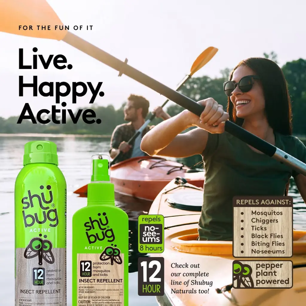 Adventure Protected.When you know you’re really gonna need bug spray, the two concerns are the bugs themselves, and the stuff you’re gonna use to keep ‘em away. Made from a Pepper Plant Based, Picaridin Blend, Shubug Active was made for just this call. With a proven 12 hours of protection, you can play all day with a single spray.Shubug ACTIVE is EPA rated for 12 hours of effective protection against Mosquitos, and 8 hours of effective protection against No-See-Ems, Chiggers, Biting Flies, and ticks. Born from the need for an all-day, everyday bug spray, Shubug goes on smooth, dries odorless, and leaves your skin feeling clean and stick-free, so your active lifestyle is as comfortable as it is protected.