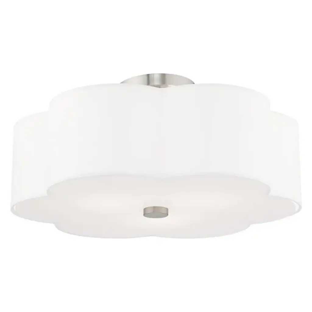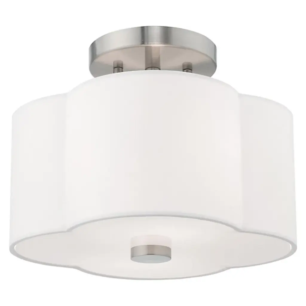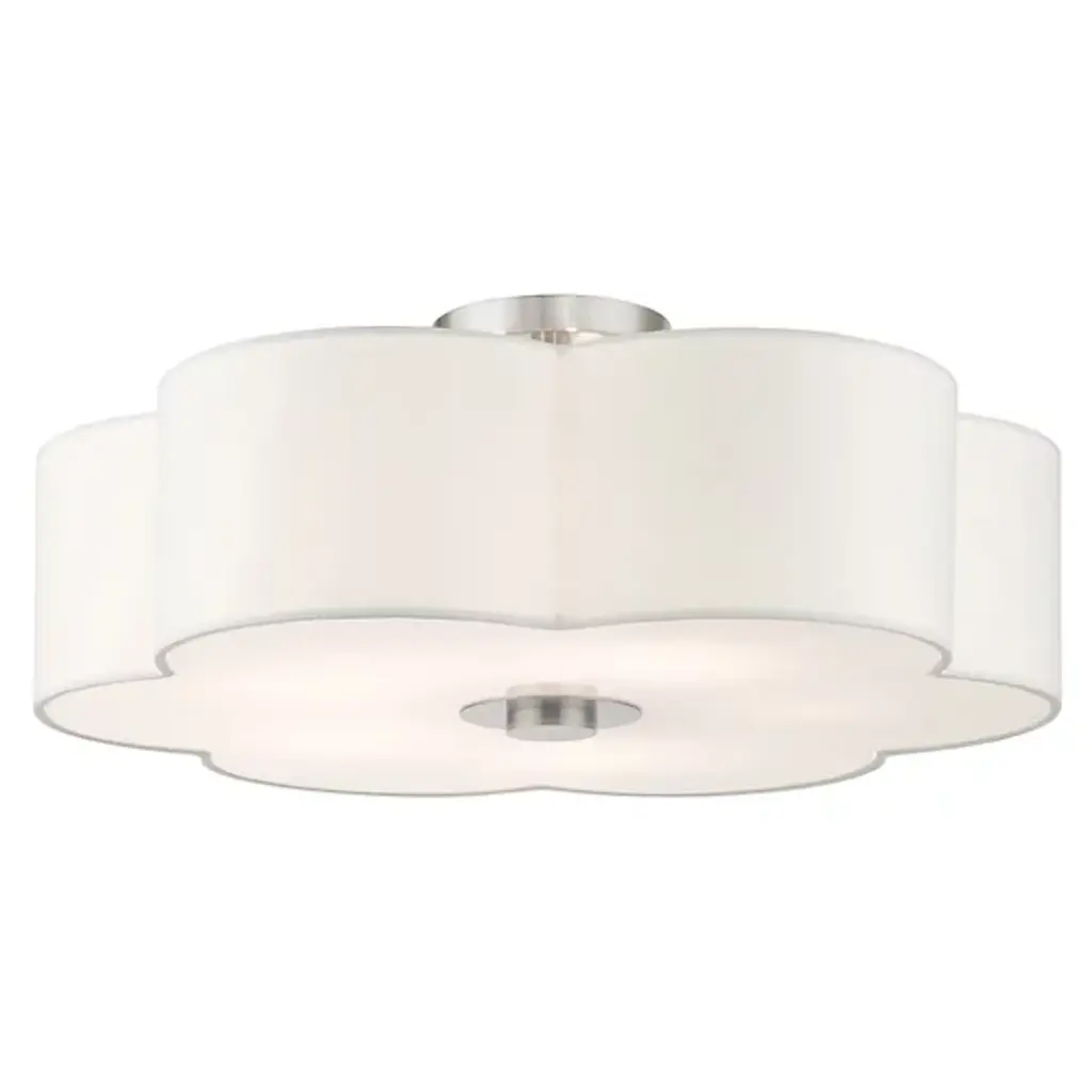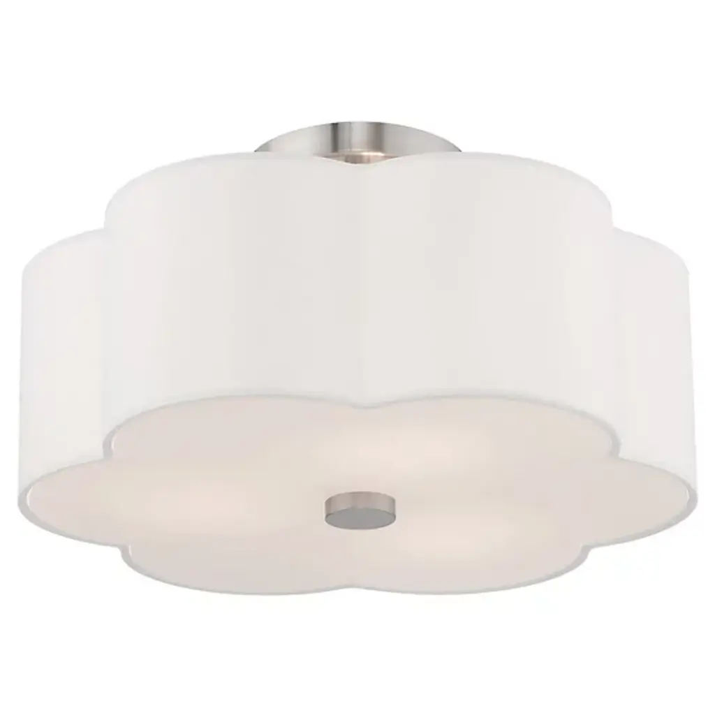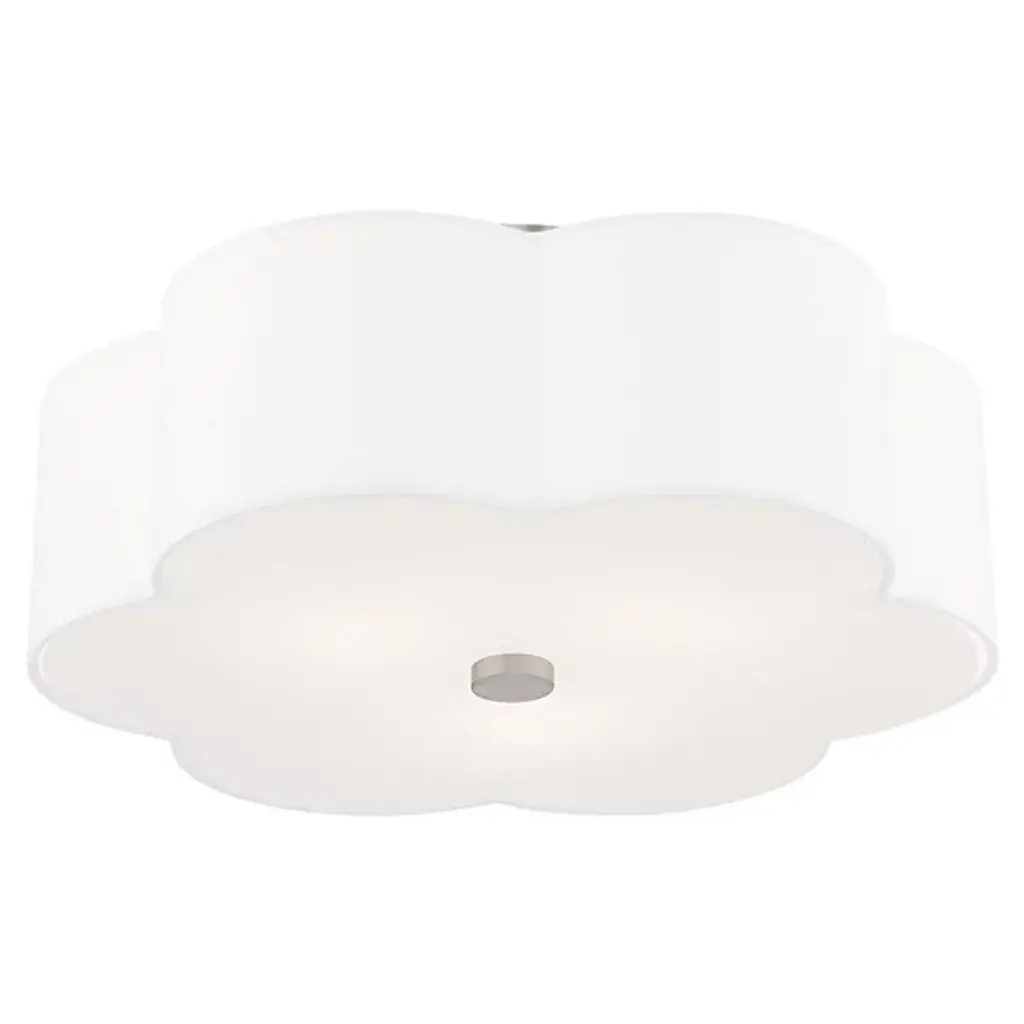 The Sibel Semi Flushmount by Alder & Ore has a chic, classy look that features a beautiful, handcrafted, clover-shaped, hardback shade. Paired with a minimal finial and an acrylic diffuser, this design is nestled close to the ceiling and brings an even, welcoming layer of illumination to surroundings as it conceals the light sources within. The clean composition and soft curves found throughout this fixture add a feminine touch to spaces while also offering a source of light.
