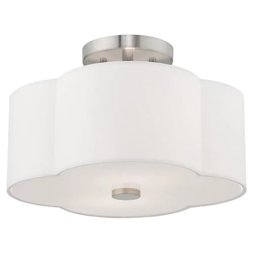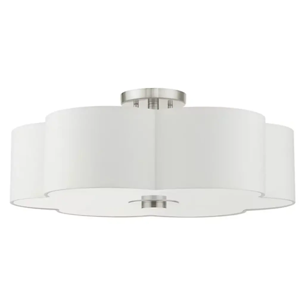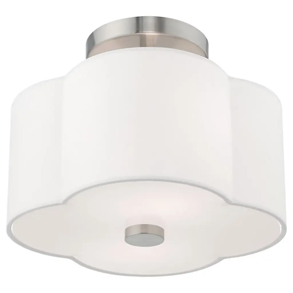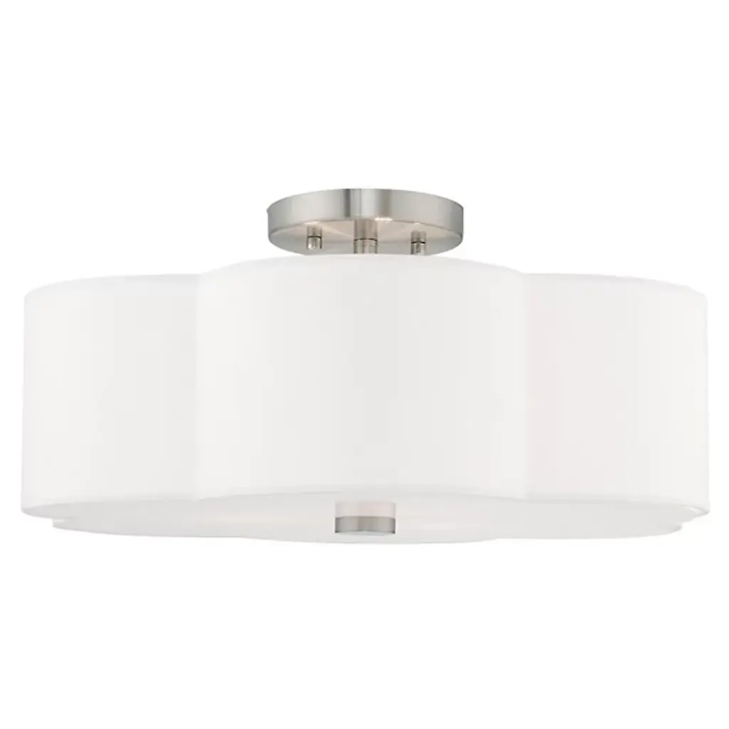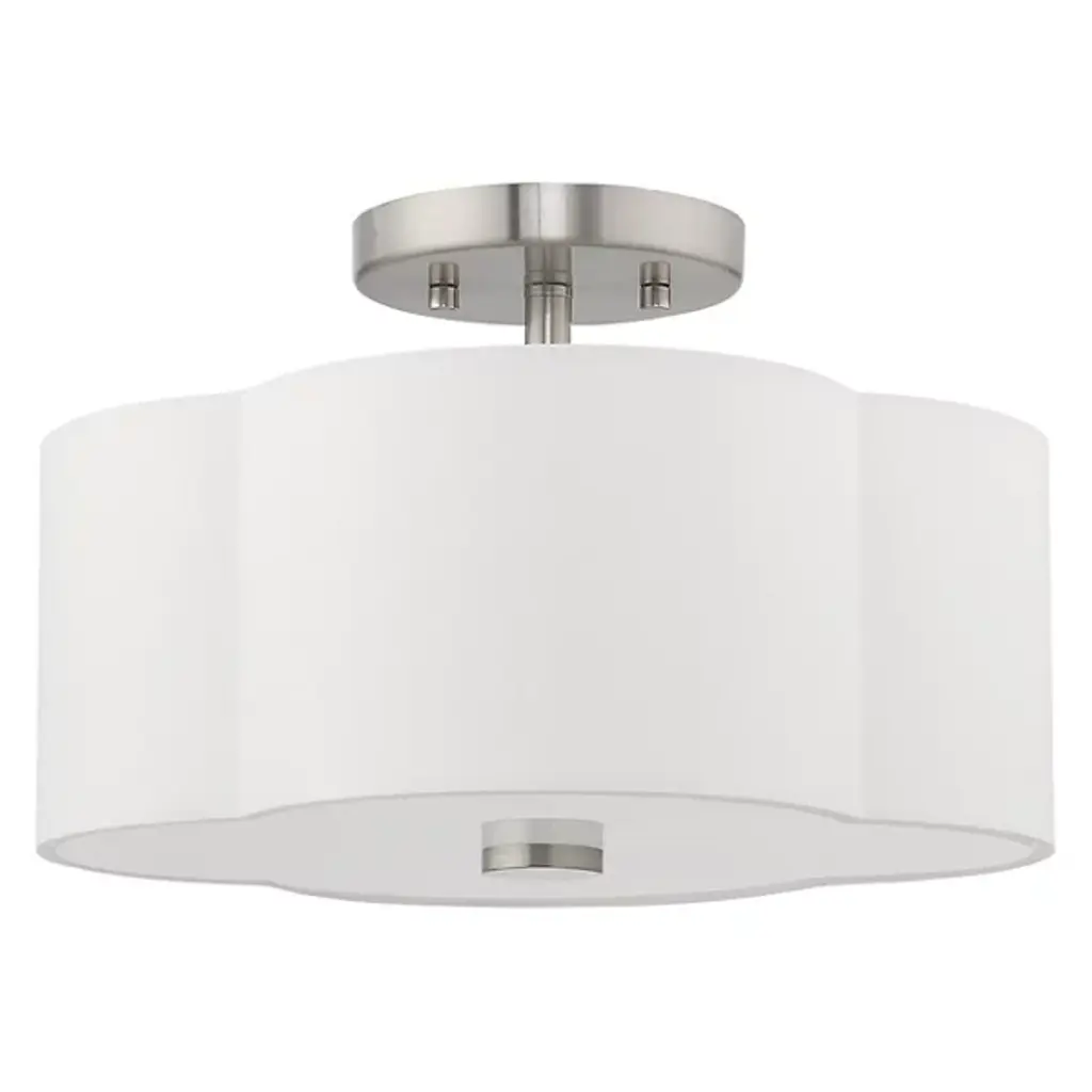 The Sibel Semi Flushmount by Alder & Ore has a chic, classy look that features a beautiful, handcrafted, clover-shaped, hardback shade. Paired with a minimal finial and an acrylic diffuser, this design is nestled close to the ceiling and brings an even, welcoming layer of illumination to surroundings as it conceals the light sources within. The clean composition and soft curves found throughout this fixture add a feminine touch to spaces while also offering a source of light.
