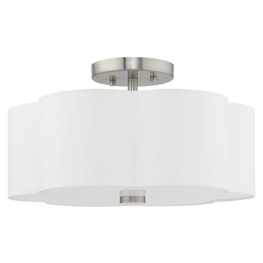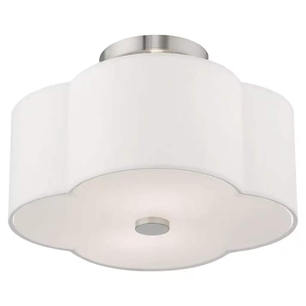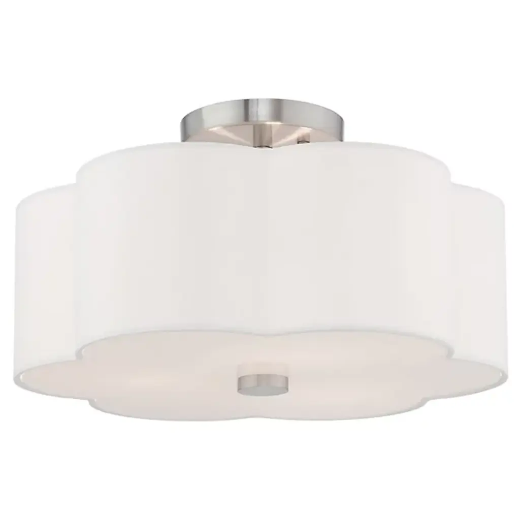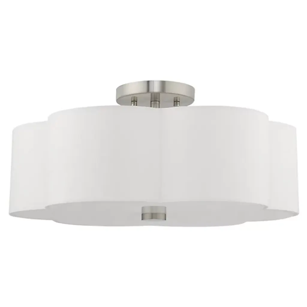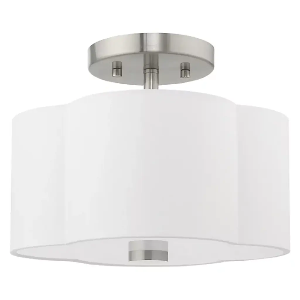 The Sibel Semi Flushmount by Alder & Ore has a chic, classy look that features a beautiful, handcrafted, clover-shaped, hardback shade. Paired with a minimal finial and an acrylic diffuser, this design is nestled close to the ceiling and brings an even, welcoming layer of illumination to surroundings as it conceals the light sources within. The clean composition and soft curves found throughout this fixture add a feminine touch to spaces while also offering a source of light.