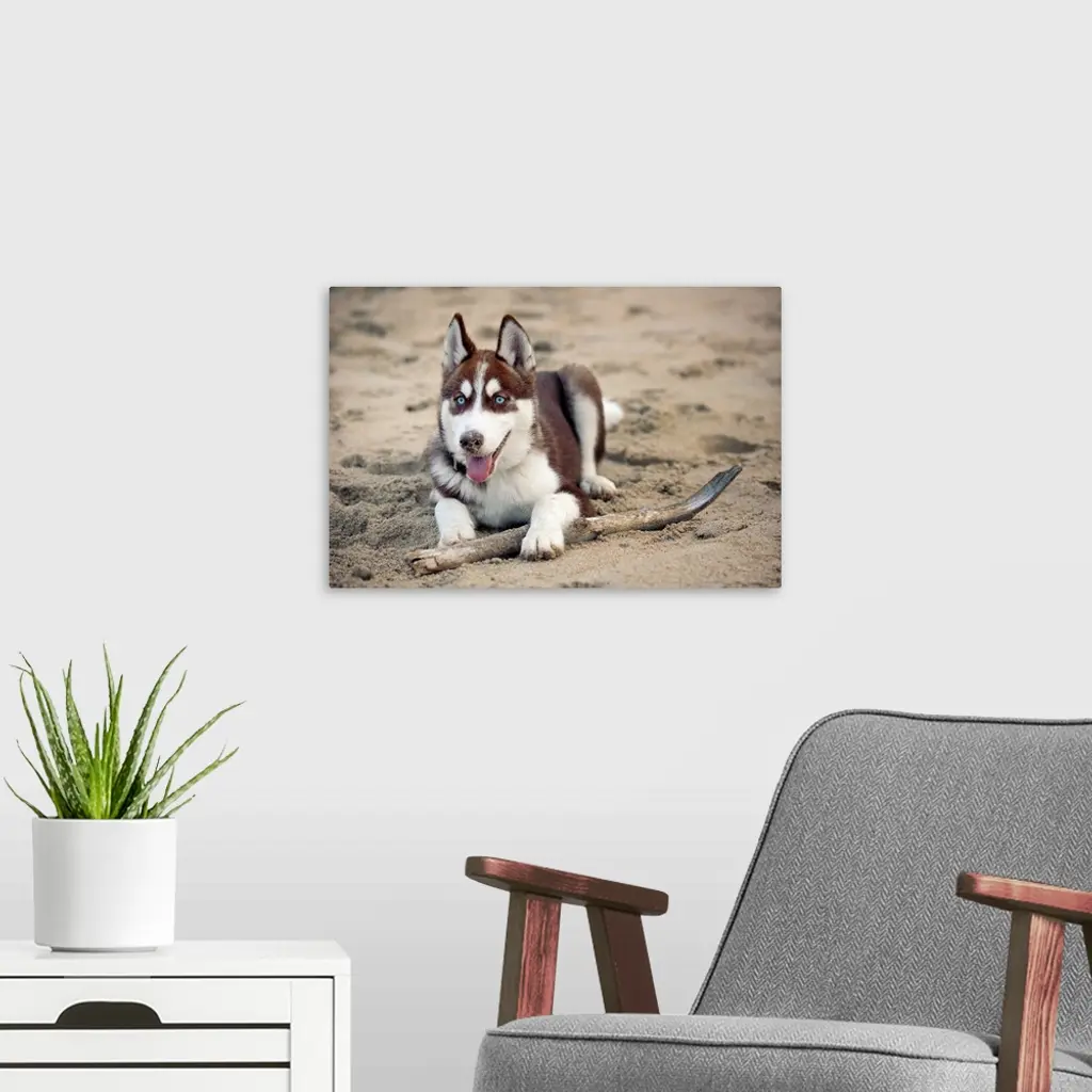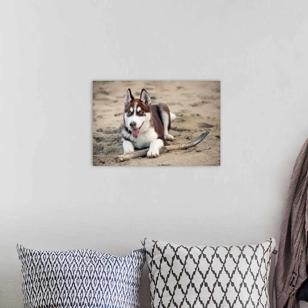 Siberian Husky at the beach wall art for home and office decor. Discover canvas art prints, photos, mural, big canvas art and framed wall art in GreatBigCanvas.com's varied collections.