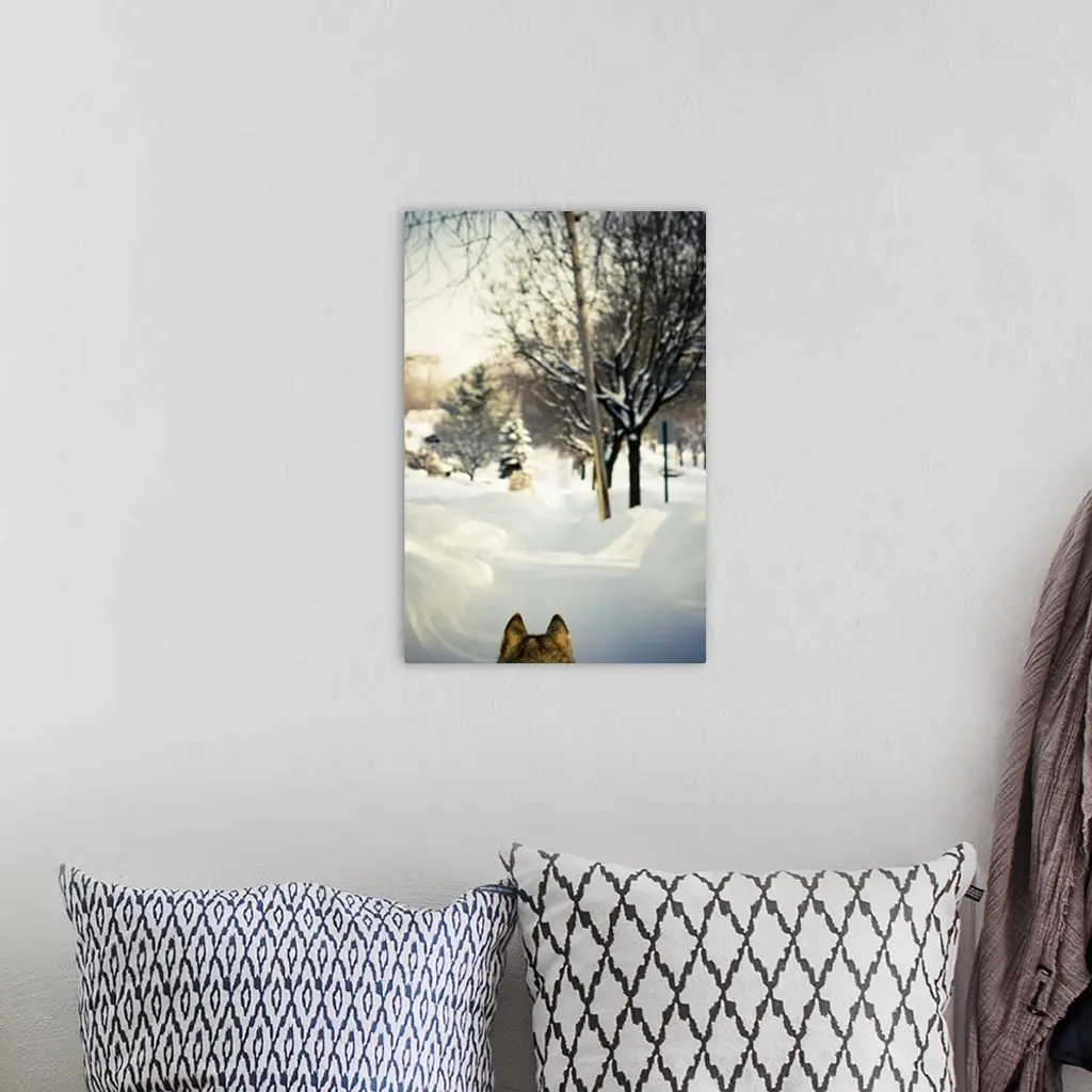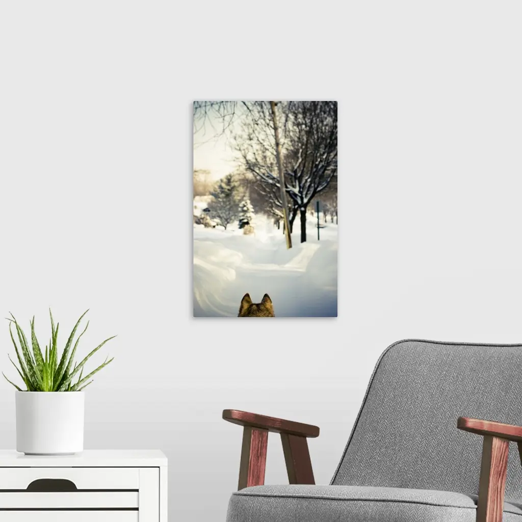 Siberian husky walking on snowy sidewalk wall art for home and office decor. Discover canvas art prints, photos, mural, big canvas art and framed wall art in GreatBigCanvas.com's varied collections.