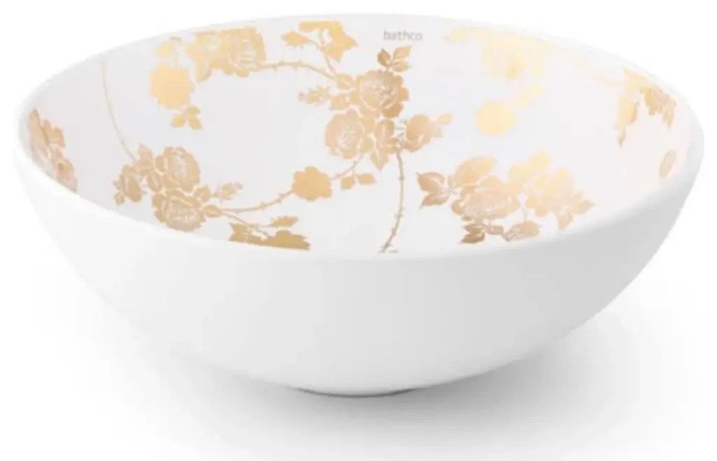 Simply posh with a valiant edge a Damascene. An artesanal technique with thousand year-old tradition which consists of applying fine gold threads to metal pieces to later wok the forms and reliefs. The Sicilia Gold Flowers 01 is ideal for spaces with a dual reading: minimalist and natural at first glance, and complex upon a second look.Measurement: 15.74" in D x 5.90" in HDetails: Porcelain and Metal Design and Manufactured in SpainThis item includes only the sink